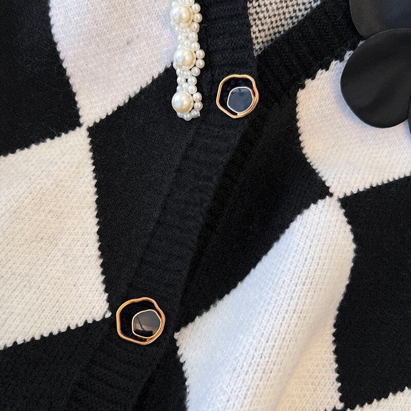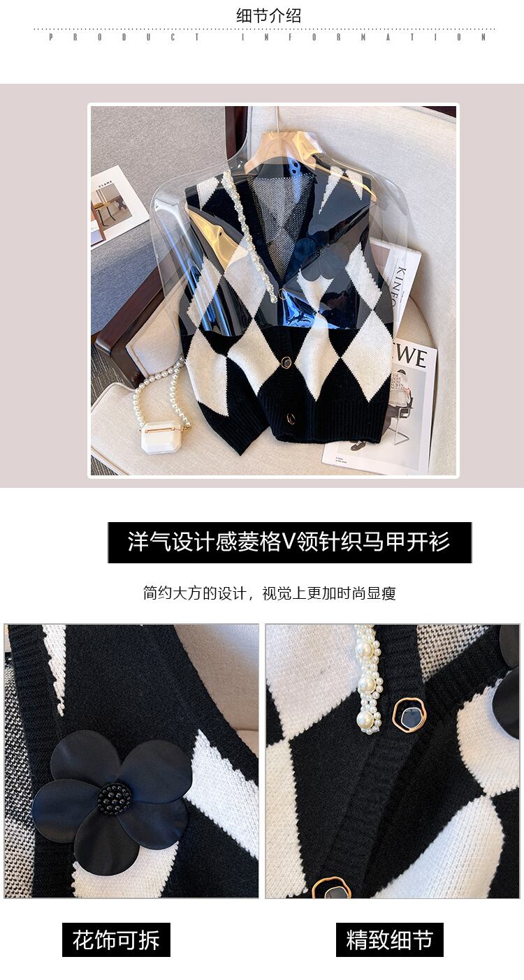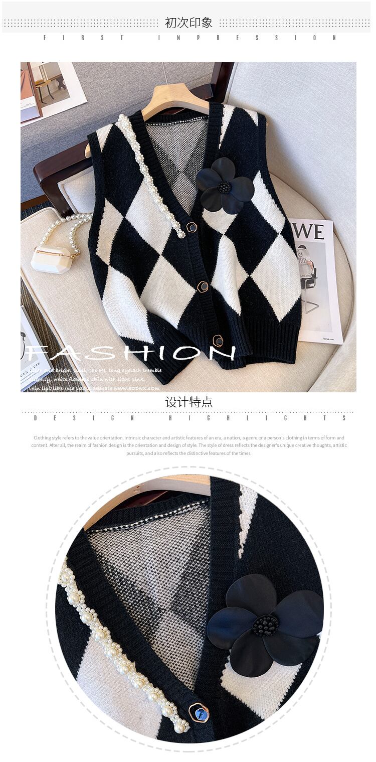 大きいサイズの婦人服 2022 ファットシスター秋の新しい v ネックニットベスト立体花ダイヤモンドカラーマッチングカーディガン女性 大きめサイズ オータム 秋物 Vネック フラワーデザイン 8884157169075898