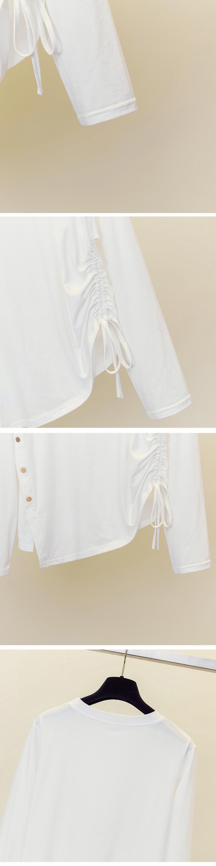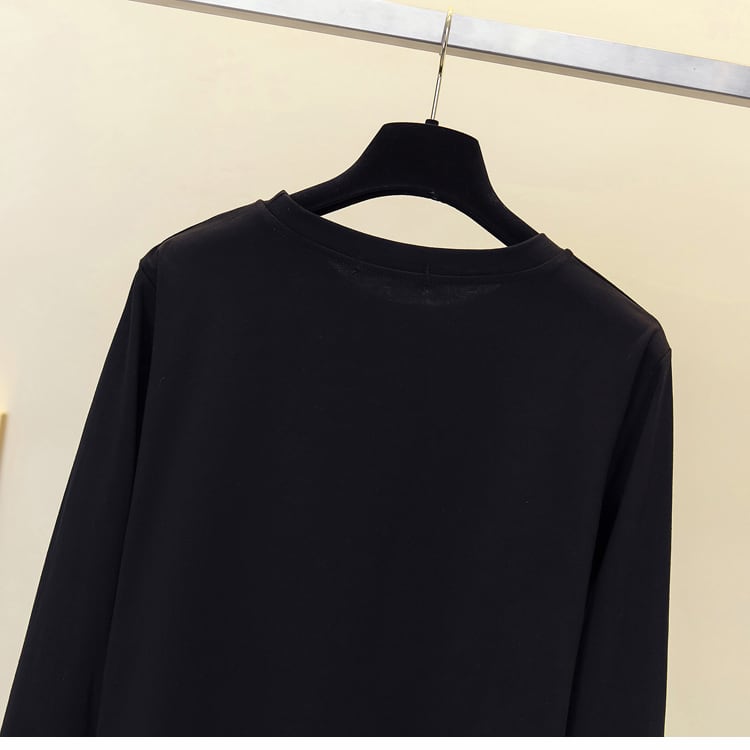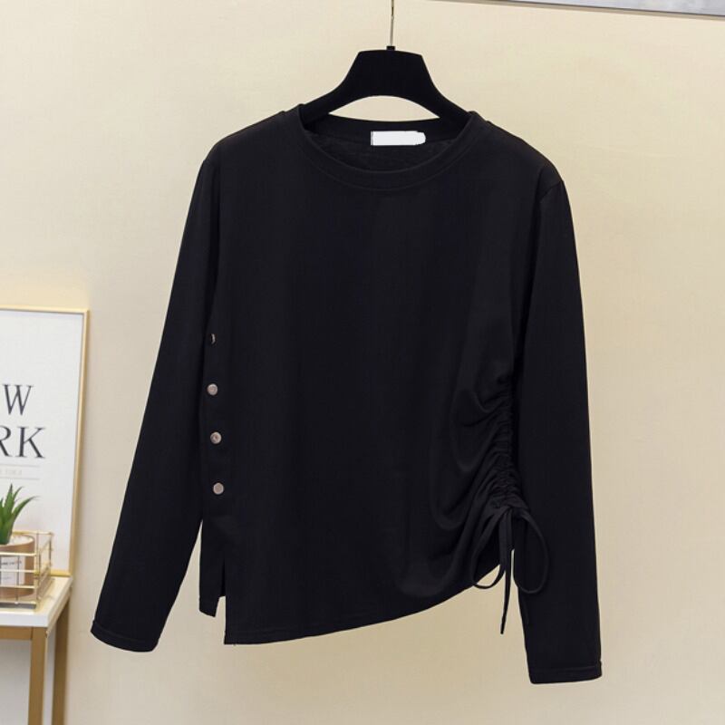 大きいサイズの婦人服 2022 秋の新しいファットシスターゆるくて薄いオールマッチファッション巾着デザイン無地 Tシャツ 大きめサイズ オータム 秋物 ソリッドカラー 888416856899453