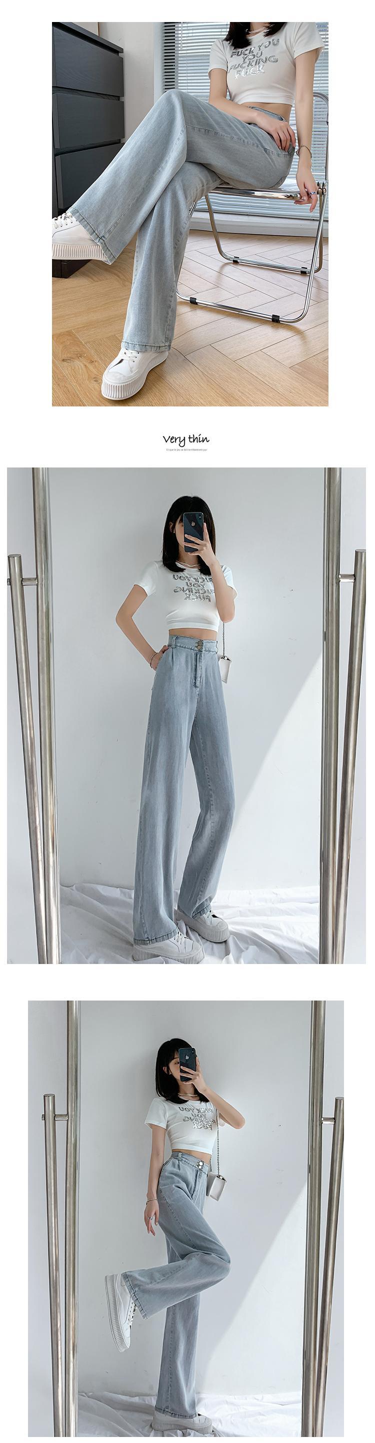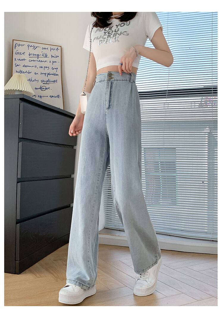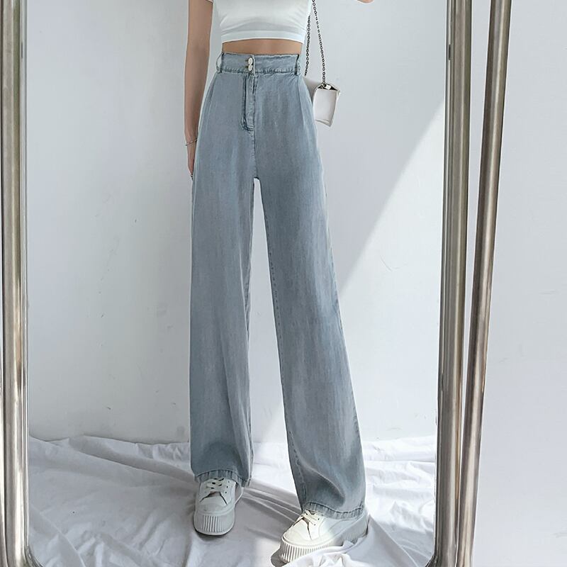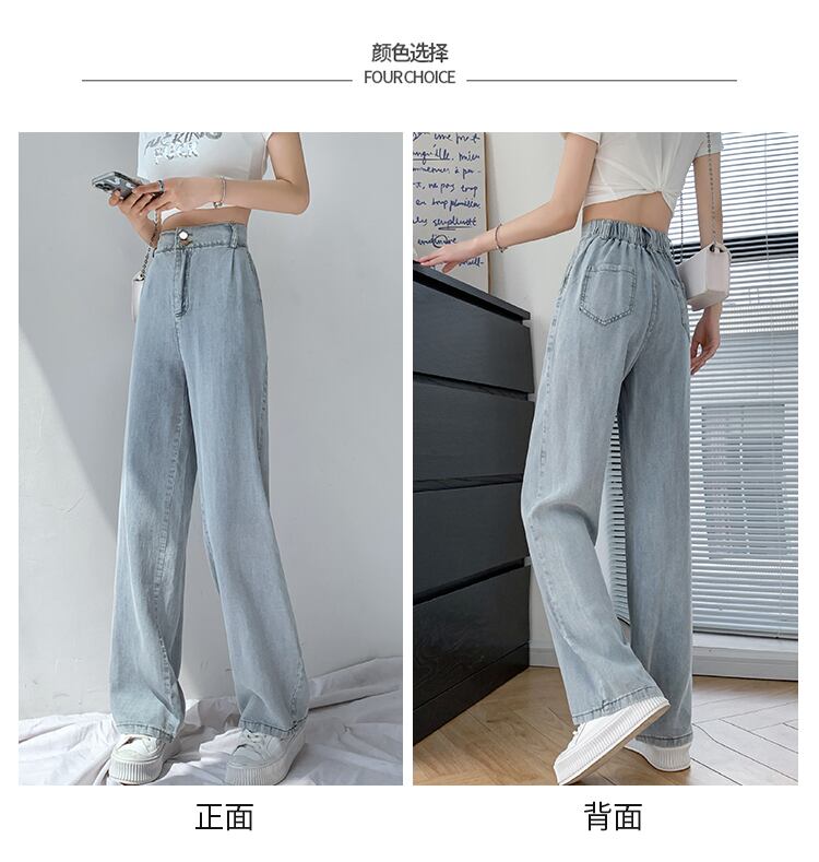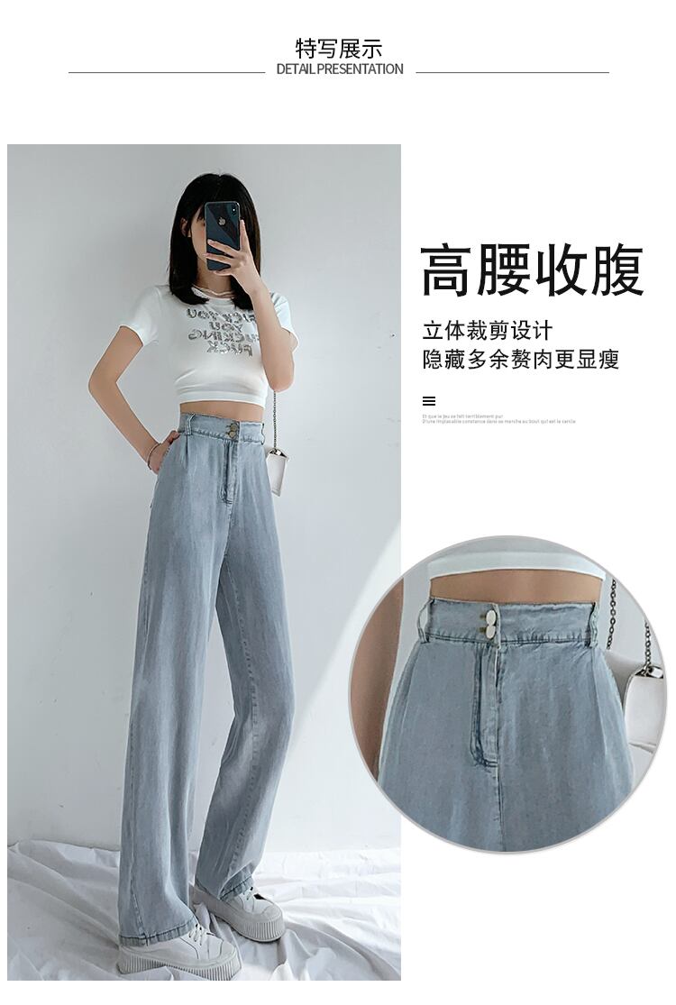 大サイズの婦人服 2022 ファットシスター夏新デニムワイドレッグパンツドレープ緩いストレートアイスシルクモップパンツ女性 大きめサイズ サマー 夏物 8884173082430364