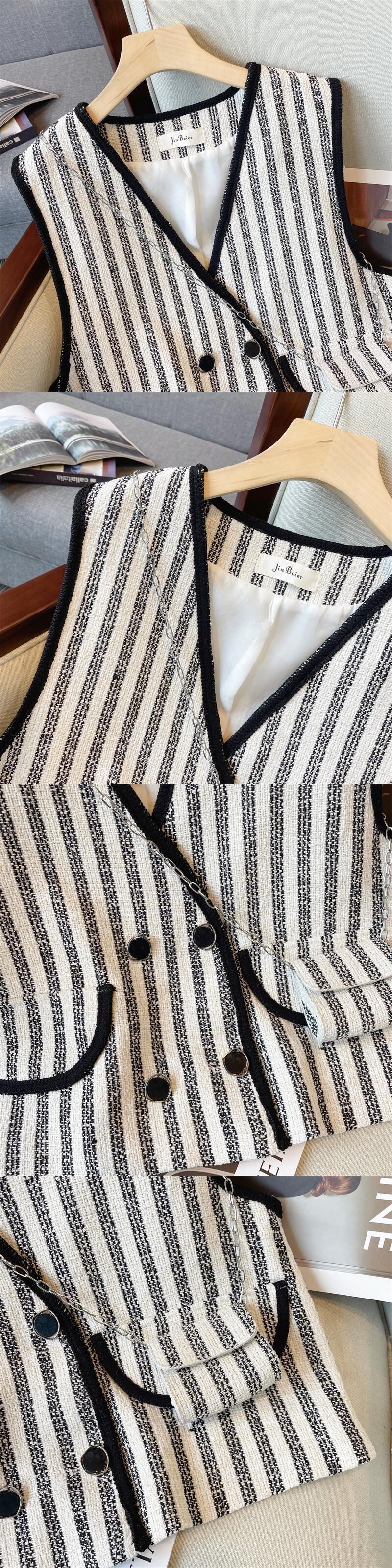 大きいサイズの婦人服 2022 秋の新ファットシスターファッションストライプベスト無地ゆるい年齢を減らすシャツ 2 点セット 大きめサイズ オータム 秋物 ソリッドカラー 8884173248029791