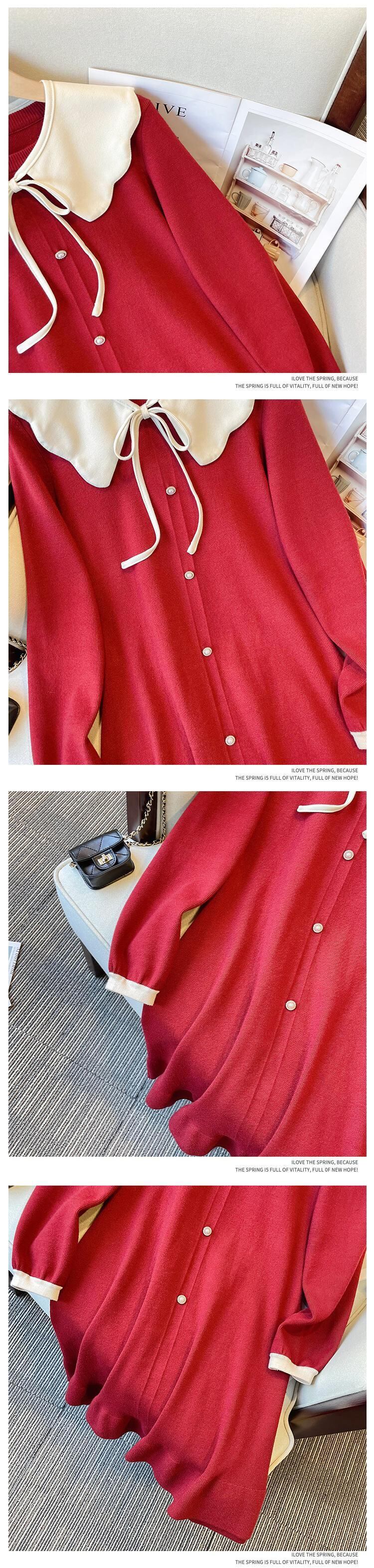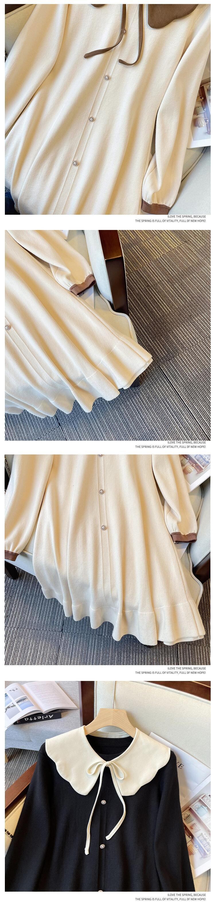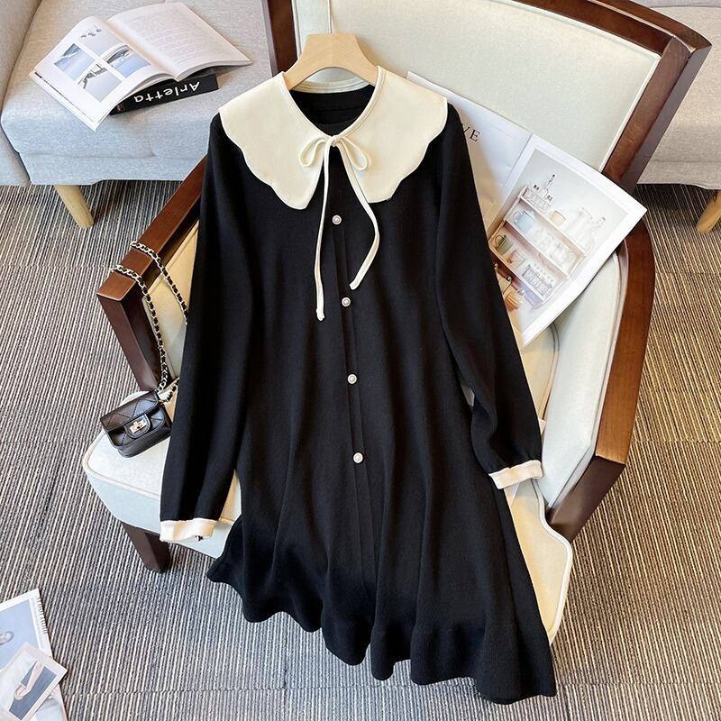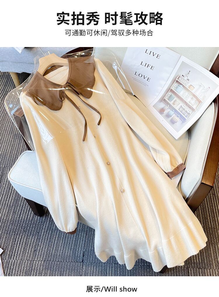 大きいサイズの婦人服 2022 トレンディな女性の秋の新しいファットシスタールーズで薄いウエストニットミドル丈ボトムスドレス 大きめサイズ オータム 秋物 8884141932065684