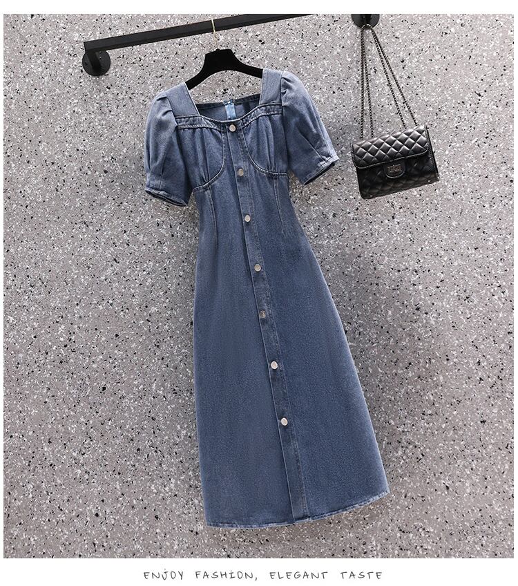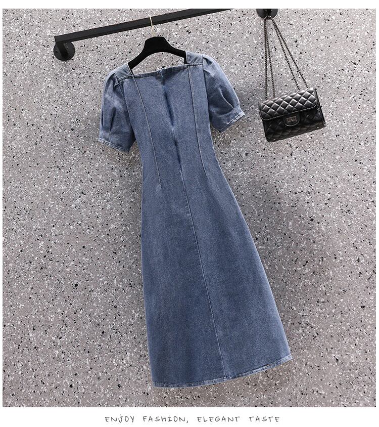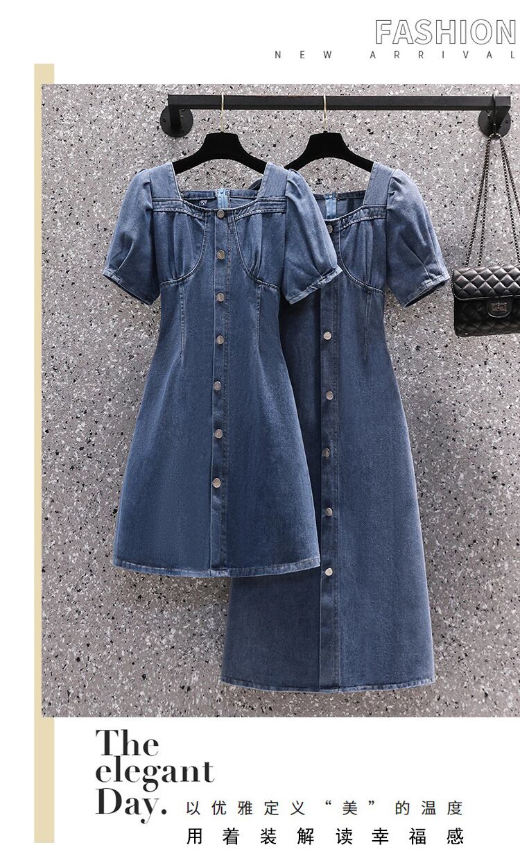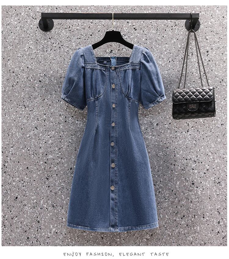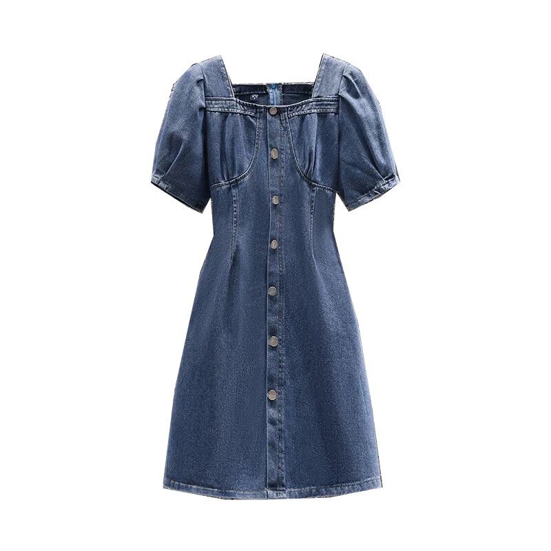 大サイズの婦人服 2022 夏新ファットシスターフレンチパフスリーブウエスト削減年齢気質デニムドレス女性 大きめサイズ サマー 夏物 888414104167526