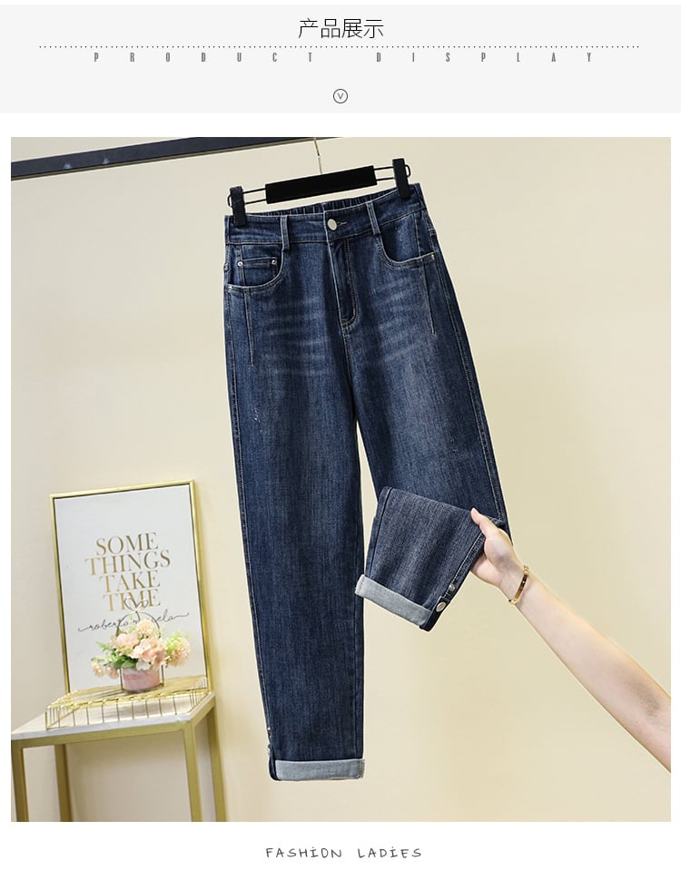 適切な股ワイド オール マッチ大きいサイズ秋婦人服 2022 の新しいパンツ ファッション デザイン センス薄いジーンズ トレンド 大きめサイズ オータム 秋物 8884175076324526