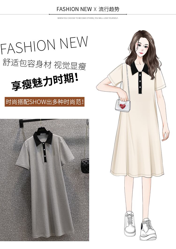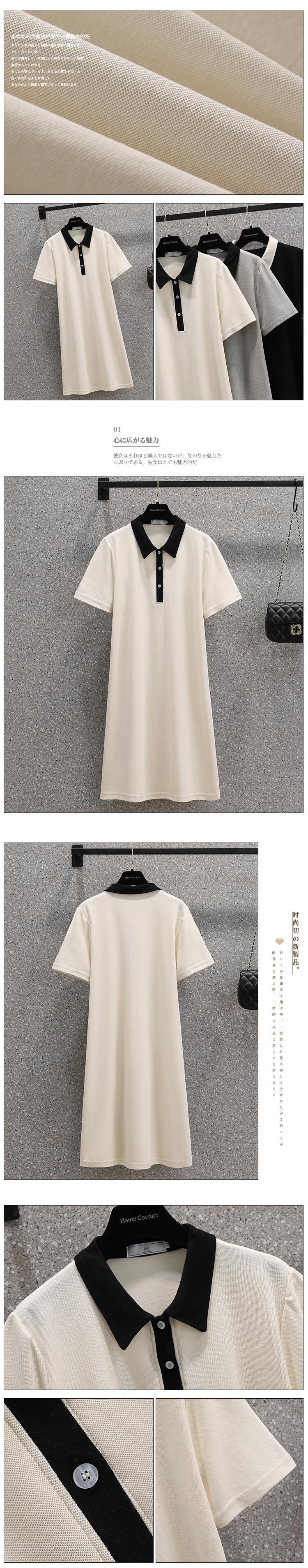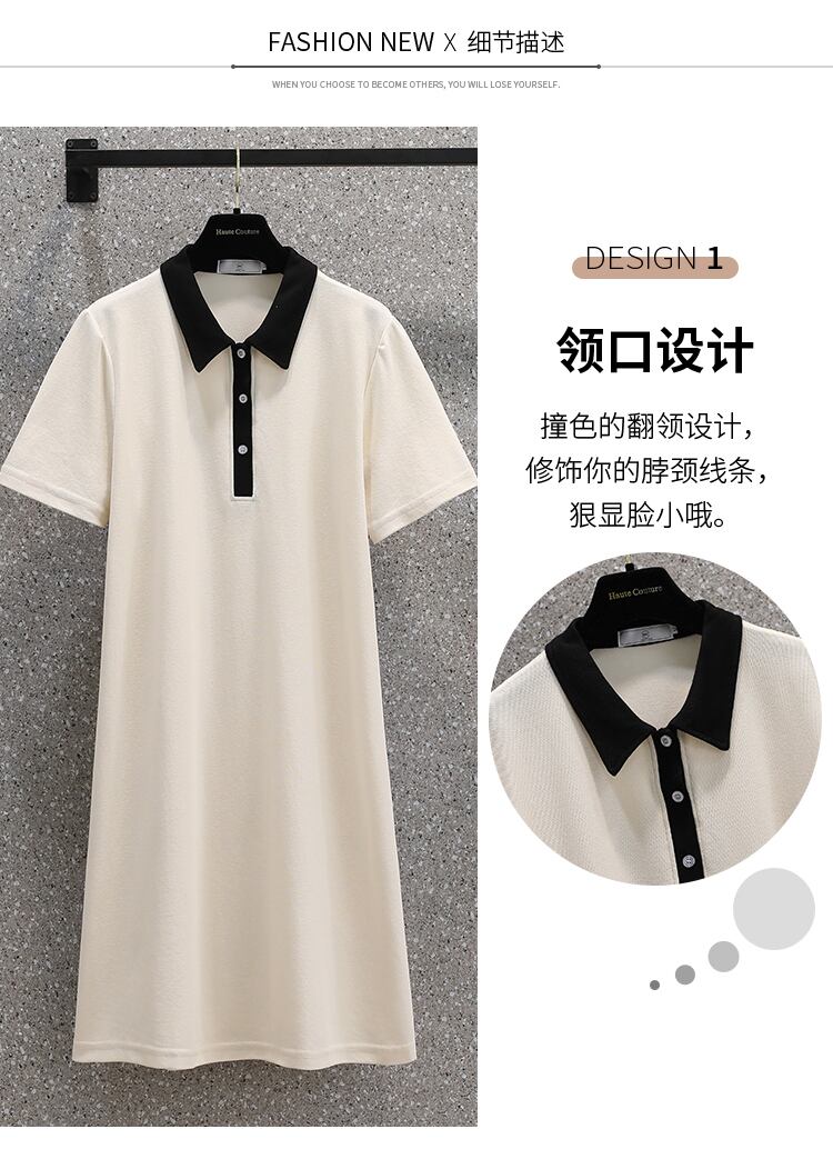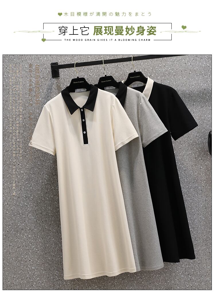 大きいサイズの婦人服2022ファットシスター夏の新作ルースポロカラーヒットカラーオールマッチロングスカートTシャツワンピ 大きめサイズ サマー 夏物 8884116749920901