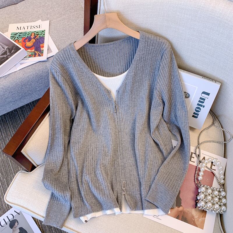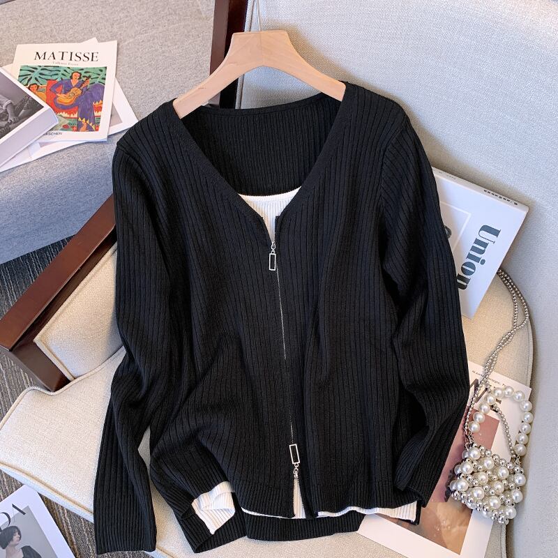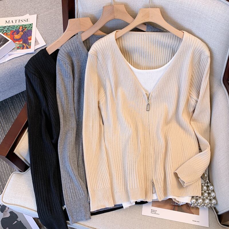 大きいサイズの婦人服2022秋の新しいファットシスターは、肉をカバーし、薄いステッチのデザインのセンスを見せて、偽の2つのファッションニットセーターを表示します 大きめサイズ オータム 秋物 8884191233665821