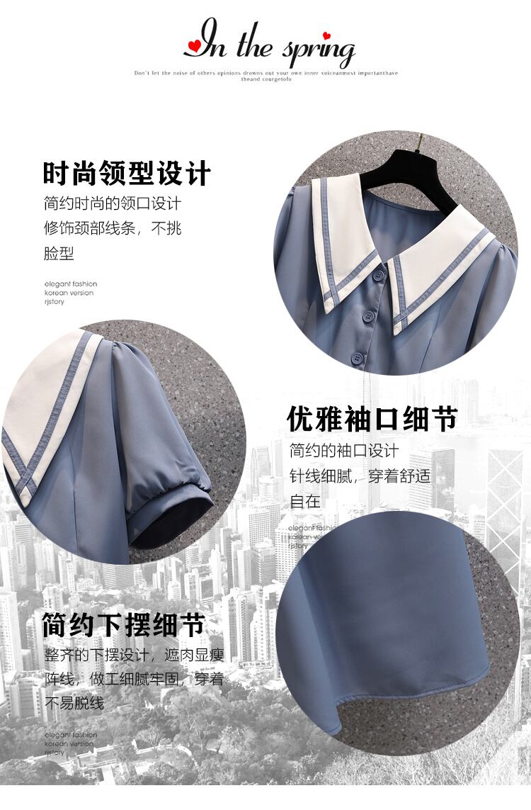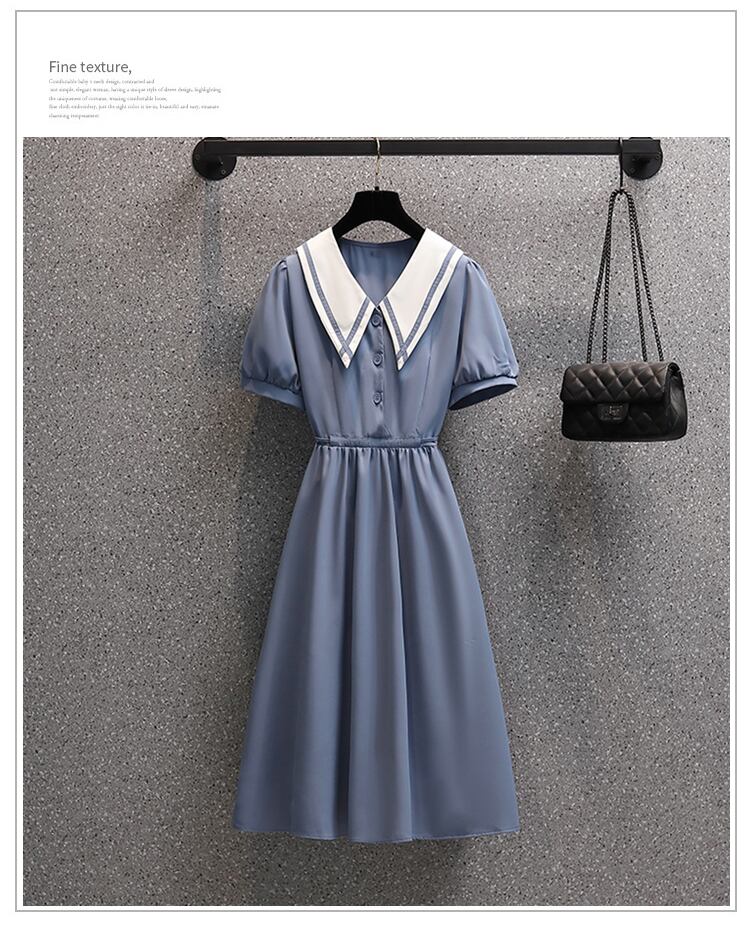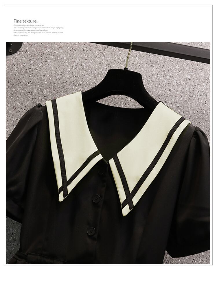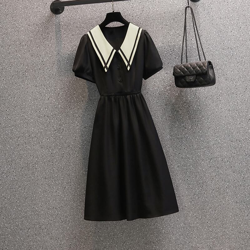 大きいサイズの婦人服 2022 夏の新しいファットシスターファッション気質年齢を減らすウエストフレンチステッチカジュアルドレス 大きめサイズ サマー 夏物 8884117534674679