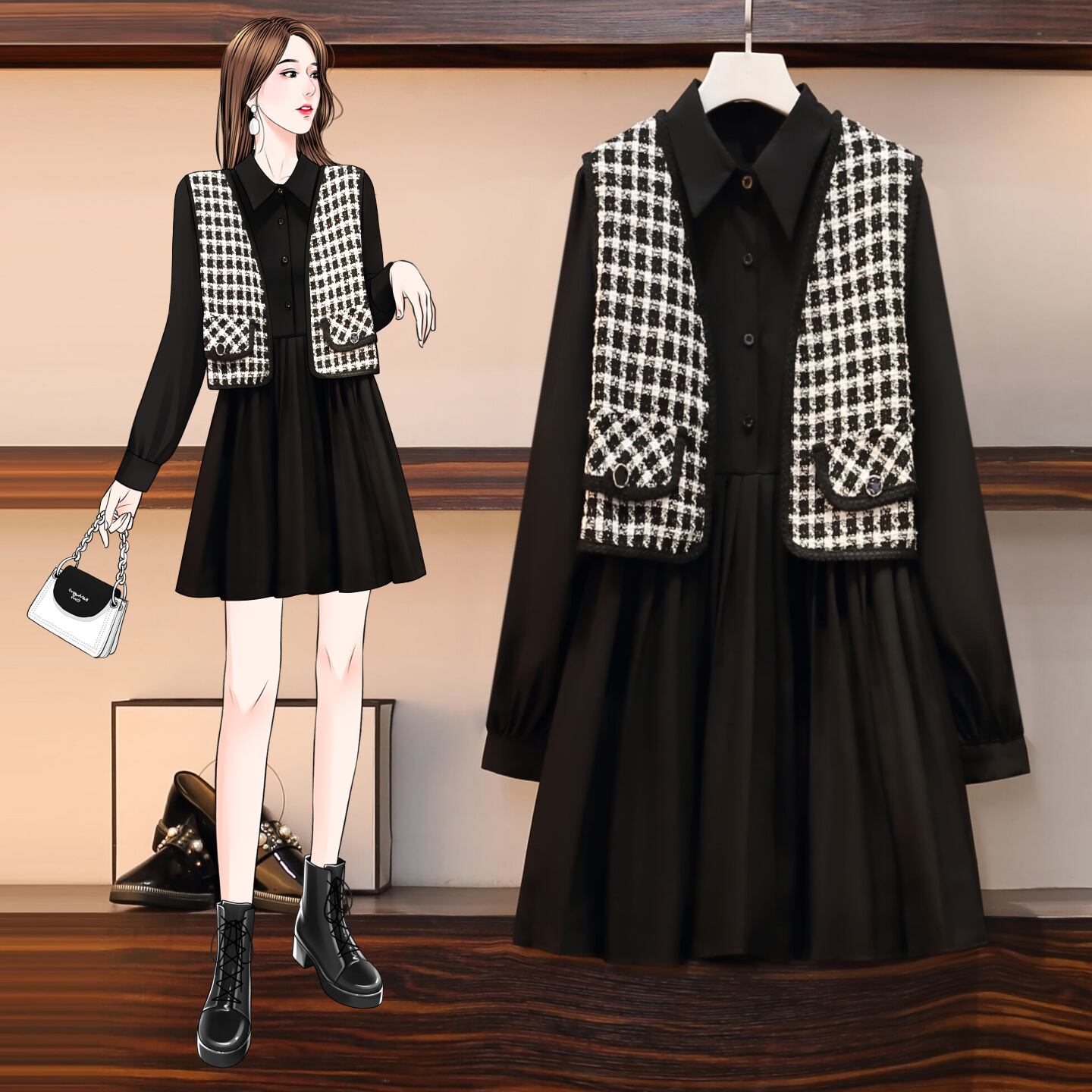 大きいサイズの婦人服 2022 太った姉妹の夏の新しいファッションの年齢を減らすルーズ ベスト ミドル丈シャツ スカート 2 点セット 大きめサイズ サマー 夏物 888412945480744