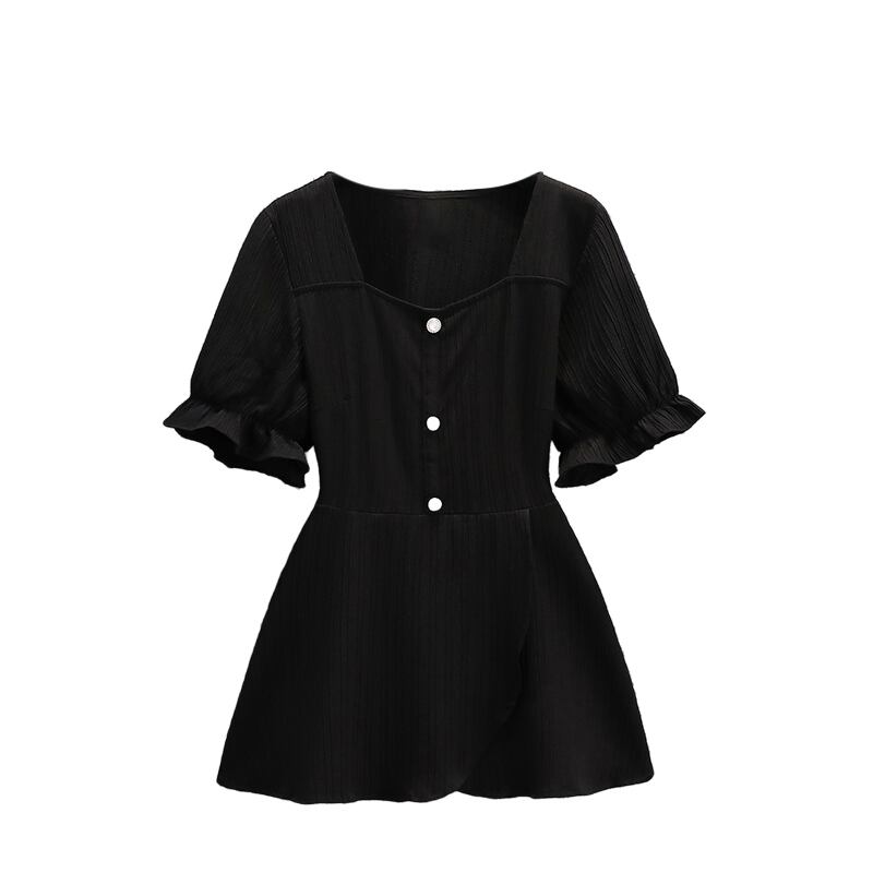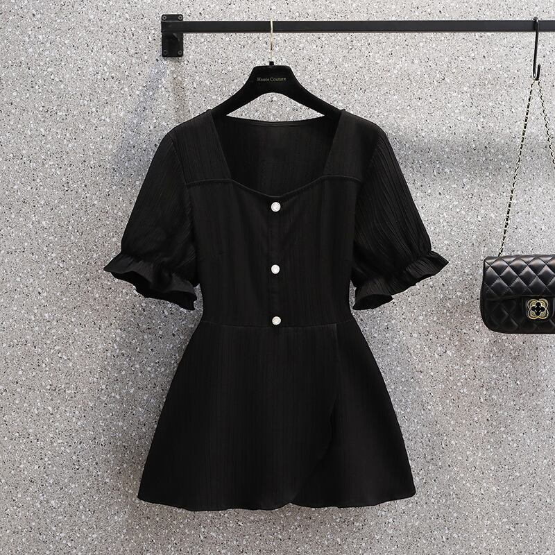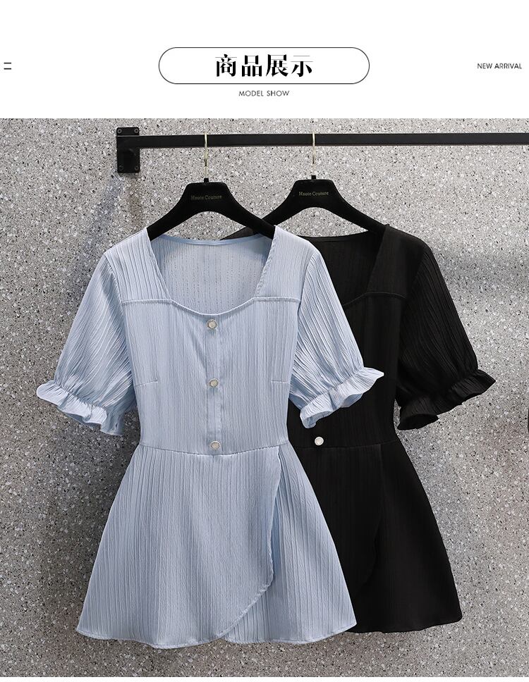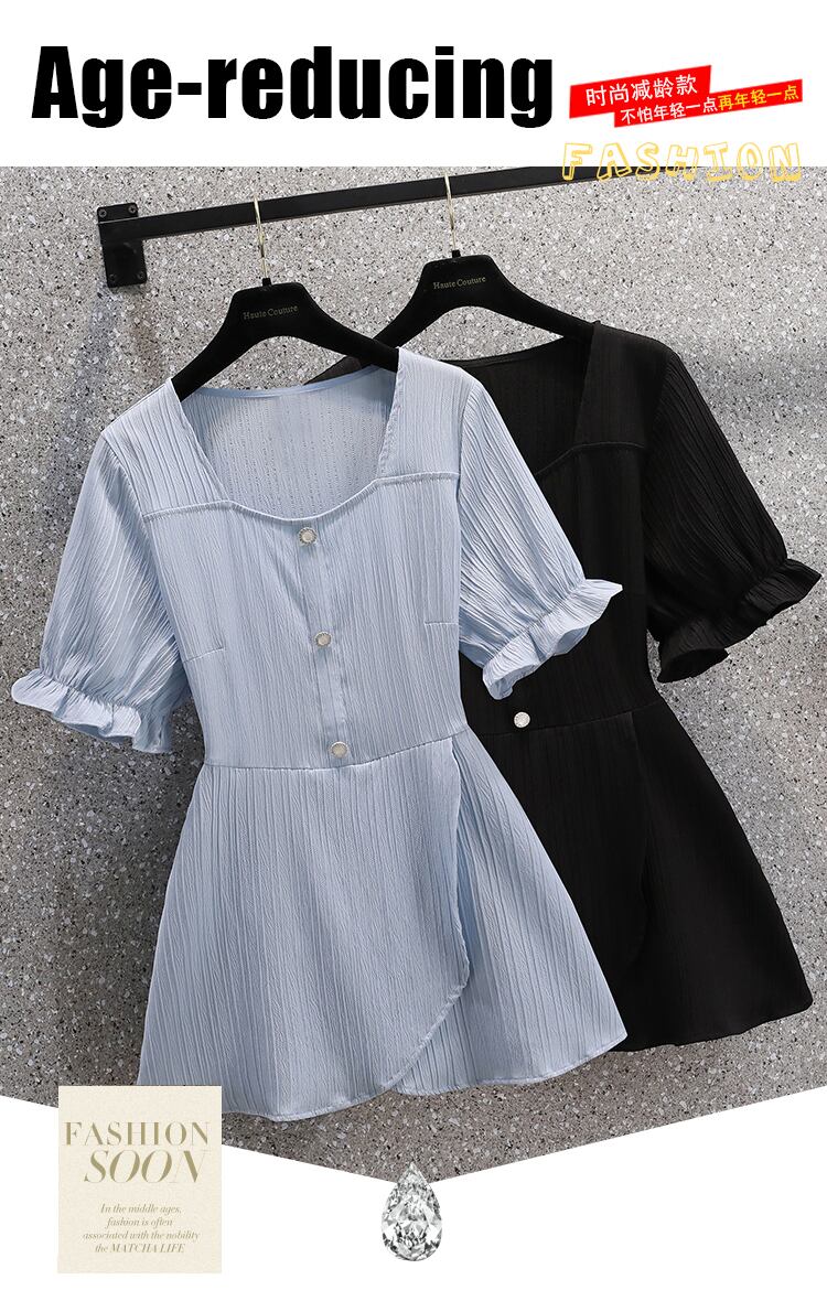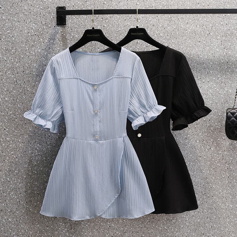 大きいサイズの婦人服 2022 夏の新しい太った姉妹ウエスト フランスの気質カバー肉半開襟薄いニッチ シャツ 大きめサイズ サマー 夏物 8884158928477944
