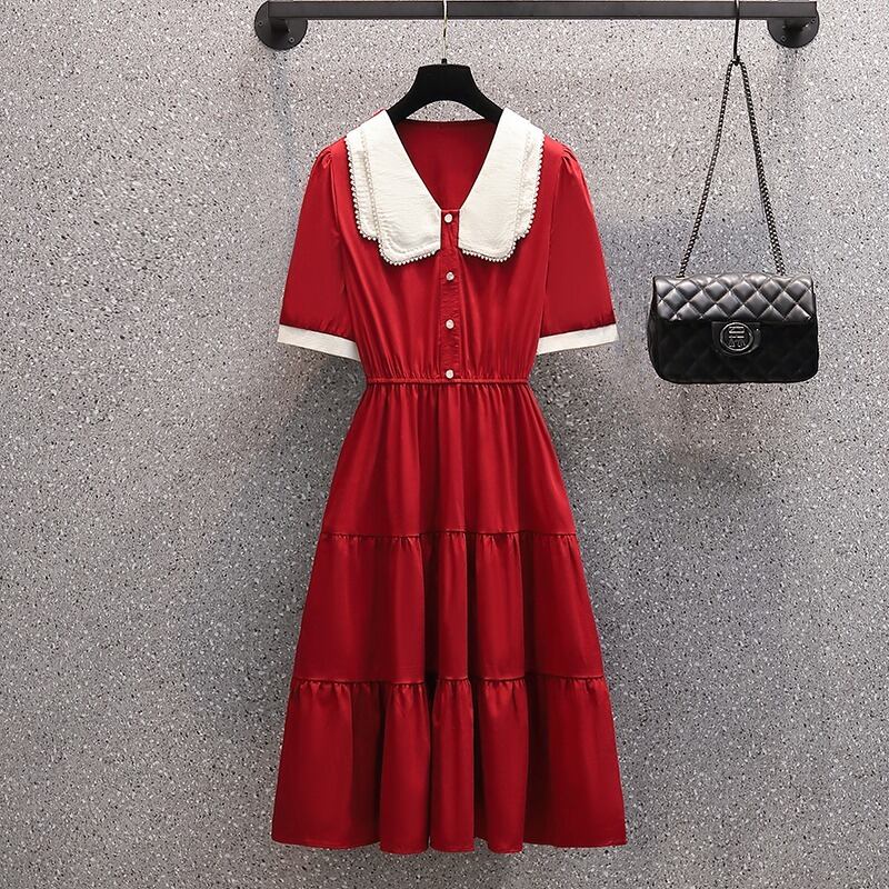 大きいサイズの婦人服 2022 夏の新しい太った姉妹のファッションの年齢を減らす気質の腰と薄いフレンチ カジュアルなドレス 大きめサイズ サマー 夏物 8884137571664210