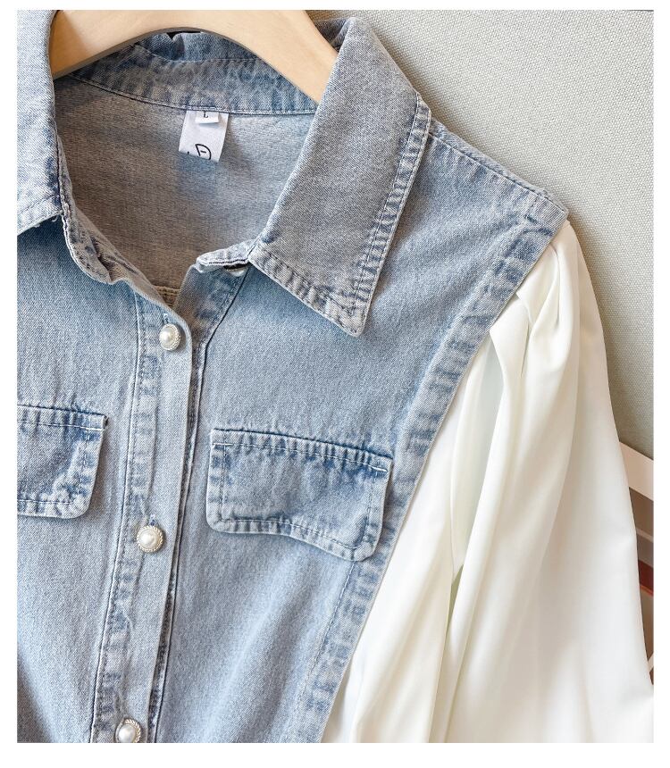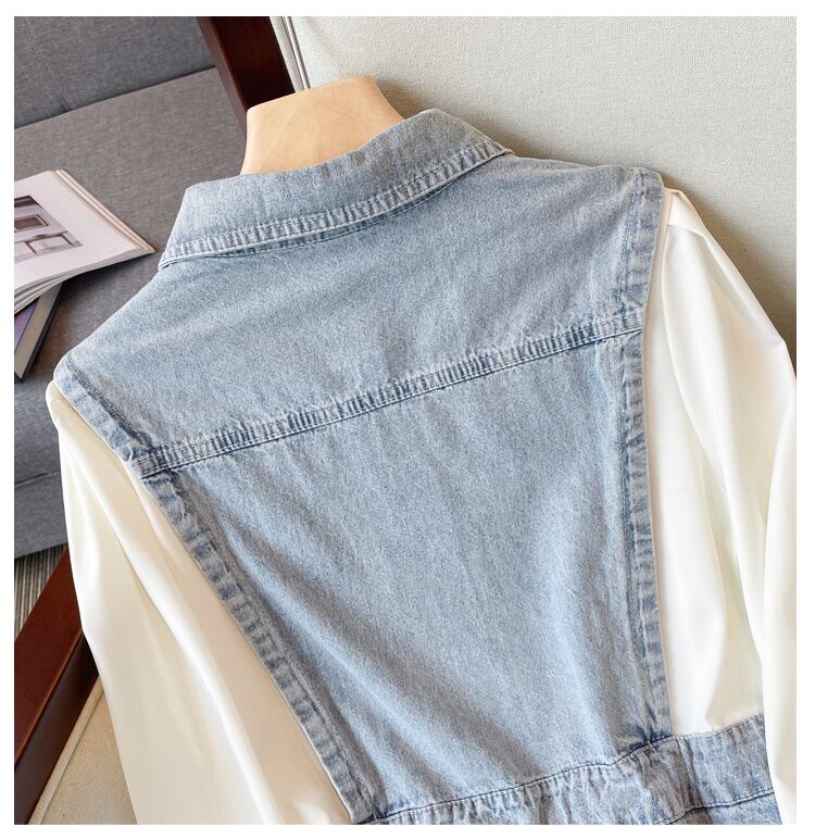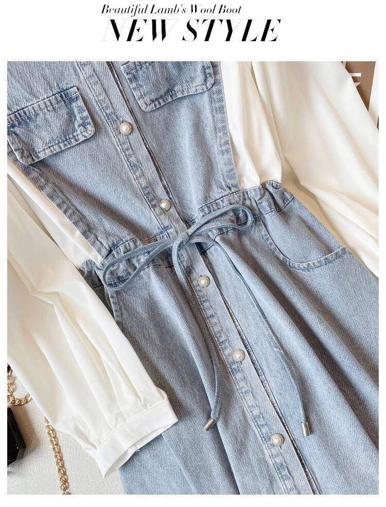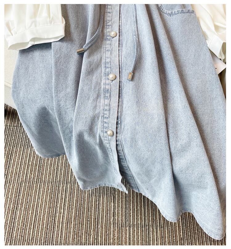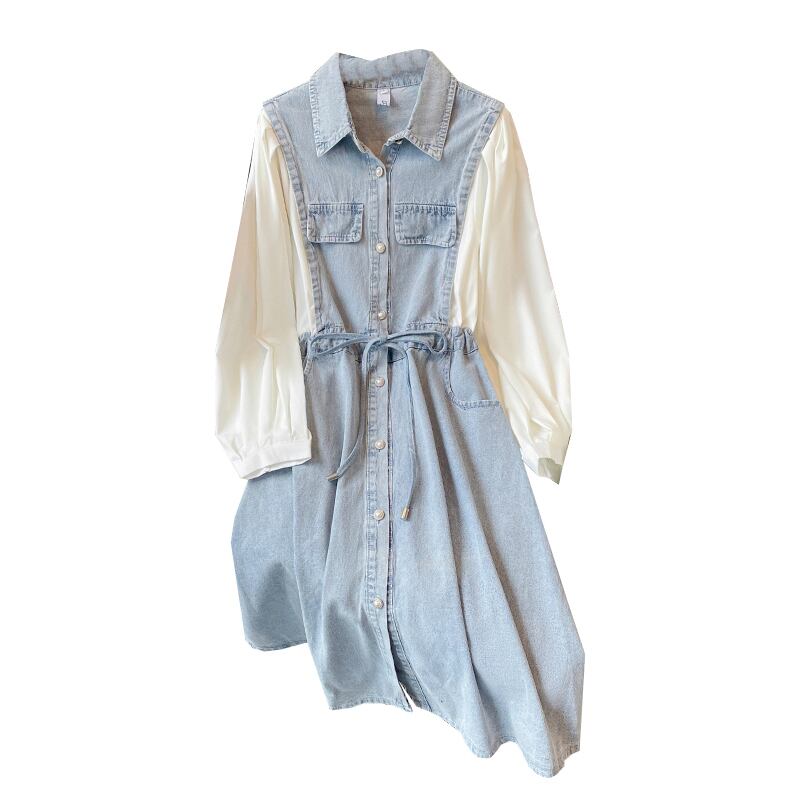 大きいサイズの婦人服 2022 トレンディな女性の秋の新しい太った姉妹の腰、痩身、腹、年齢の減少、偽のツーピースのデニムのドレス 大きめサイズ オータム 秋物 8884116663697109