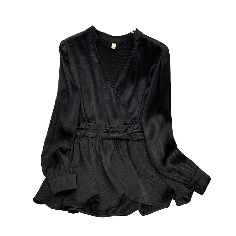 大サイズの婦人服 2022 ファットシスター秋の新ファッション薄型シフォンシャツトップファッション長袖 v ネックシャツ ロング 大きめサイズ オータム 秋物 Vネック 8884197382320506