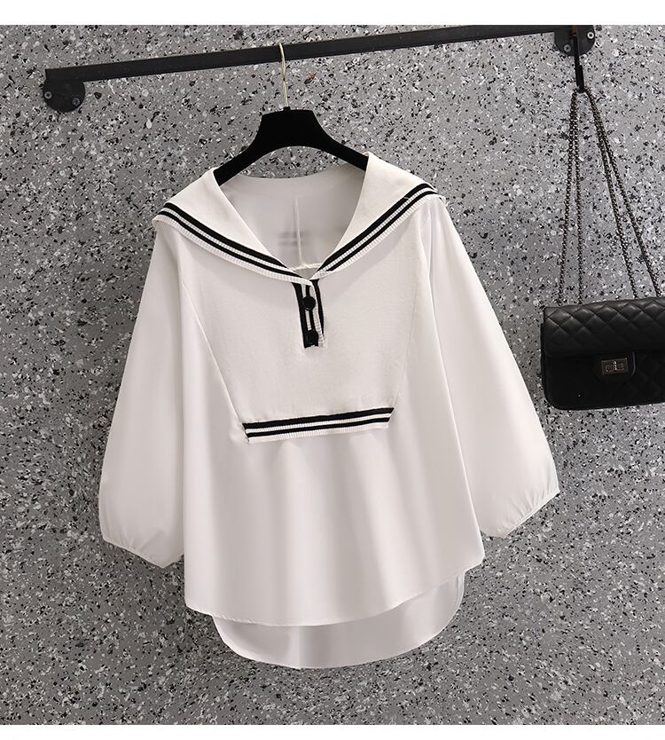 大きいサイズの婦人服2022ファットシスター夏の新しいファッションルーズネイビーカラーフェイクツーピーススリムミドル丈トップ 大きめサイズ サマー 夏物 8884143656545560