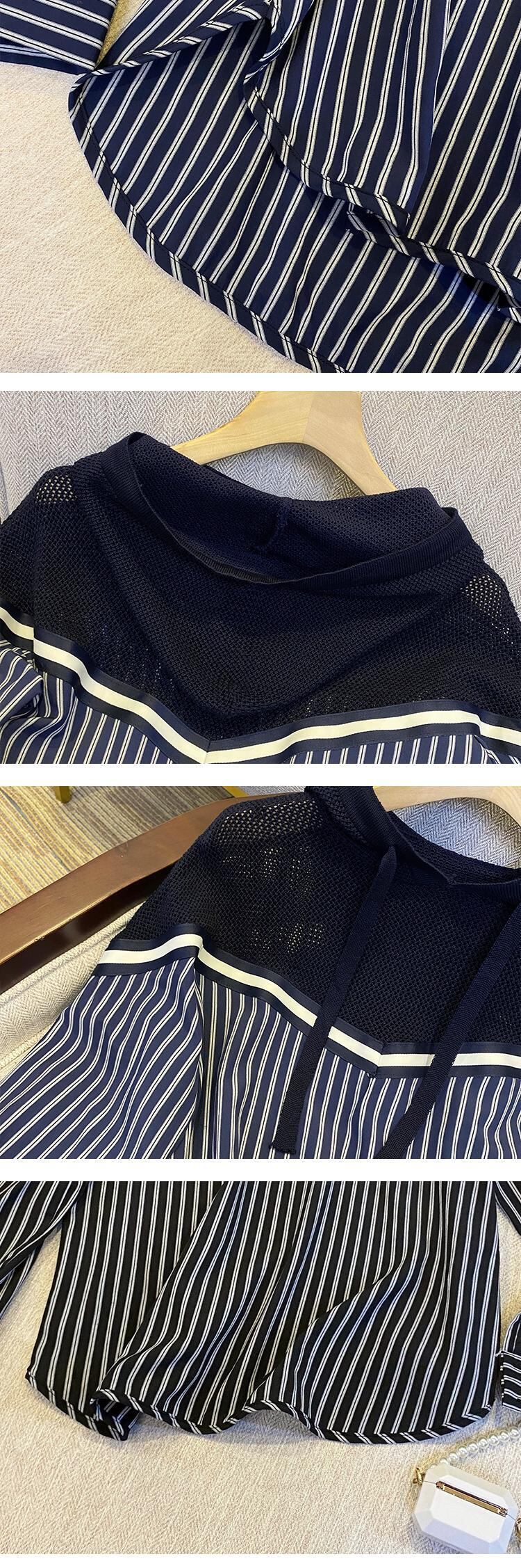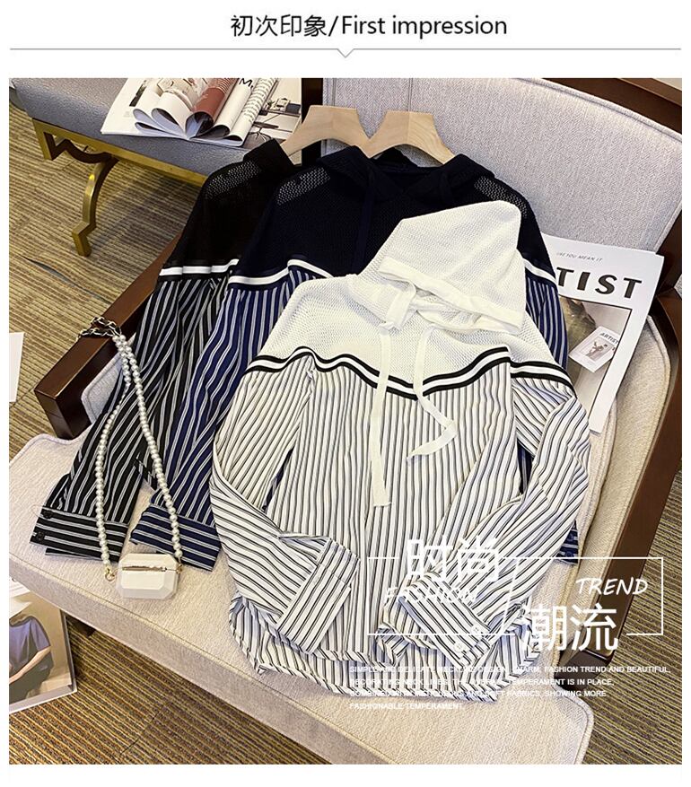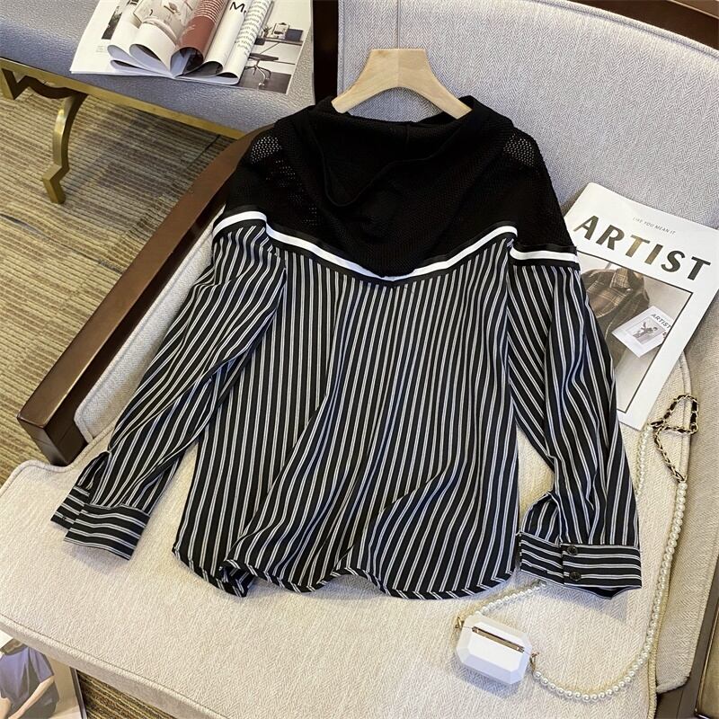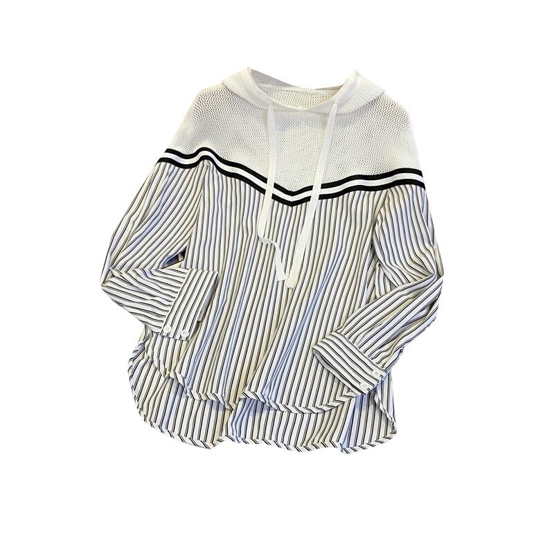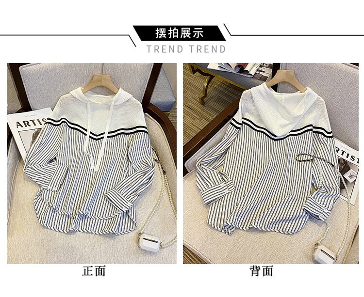 大サイズの婦人服 2022 ファットシスター秋新スタイルステッチシャツフード付きデザインルーズフェイクツーピーストップ女性 大きめサイズ オータム 秋物 8884120126955674
