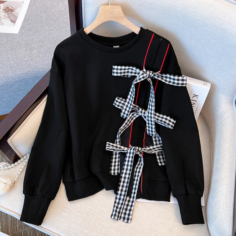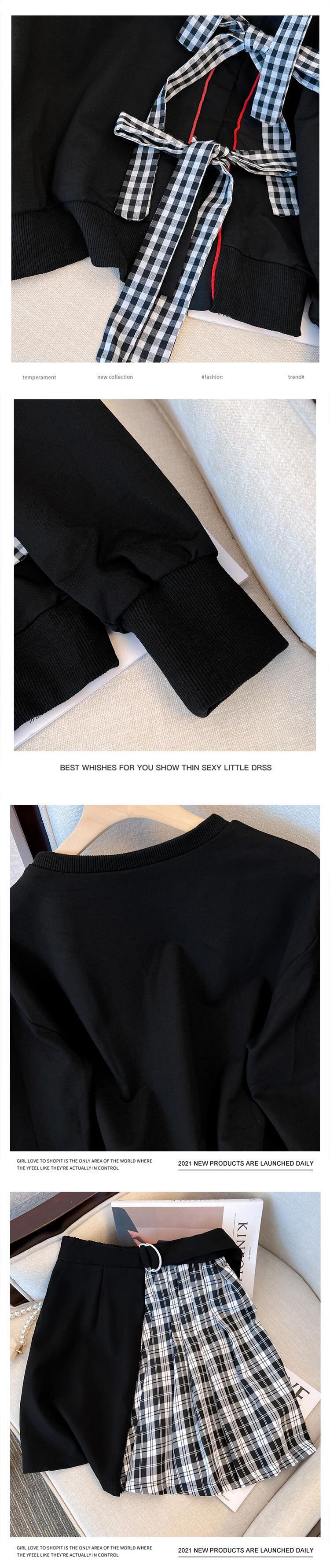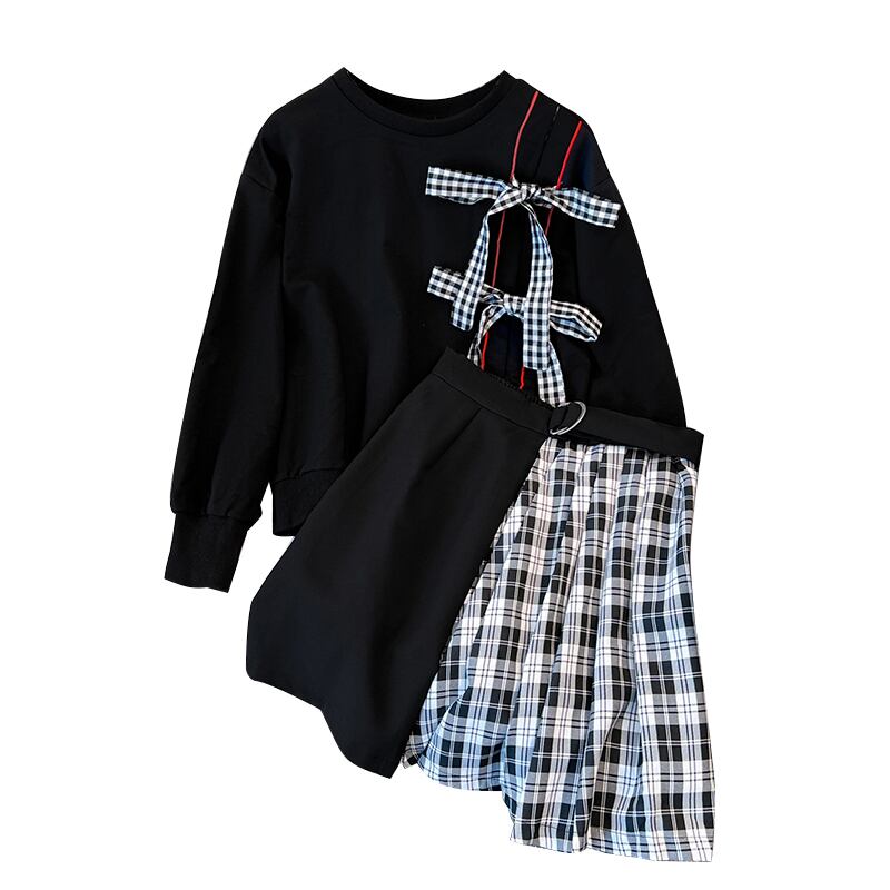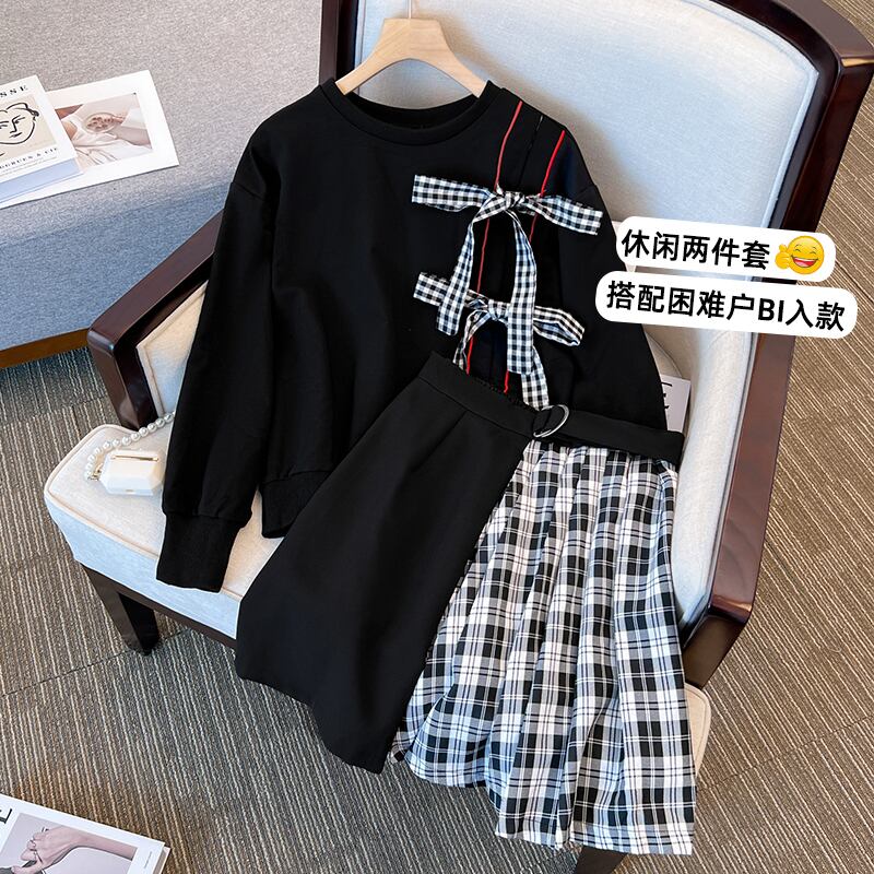 大きいサイズの婦人服 2022 ファットシスター秋の新ファッション弓長袖セーターステッチスカート 2 点セット ロング リボン 大きめサイズ オータム 秋物 8884188495523560