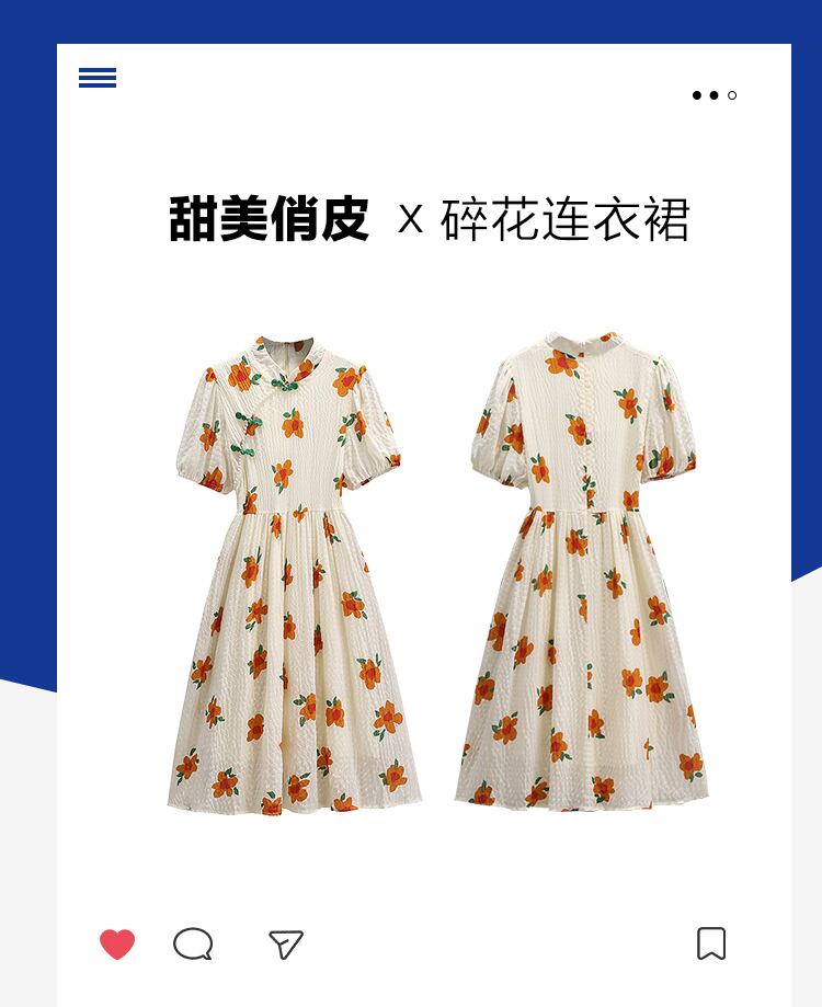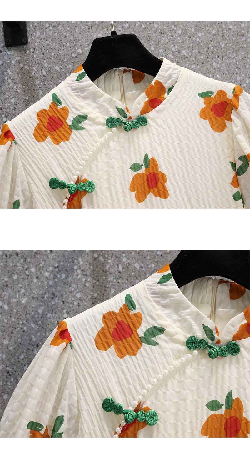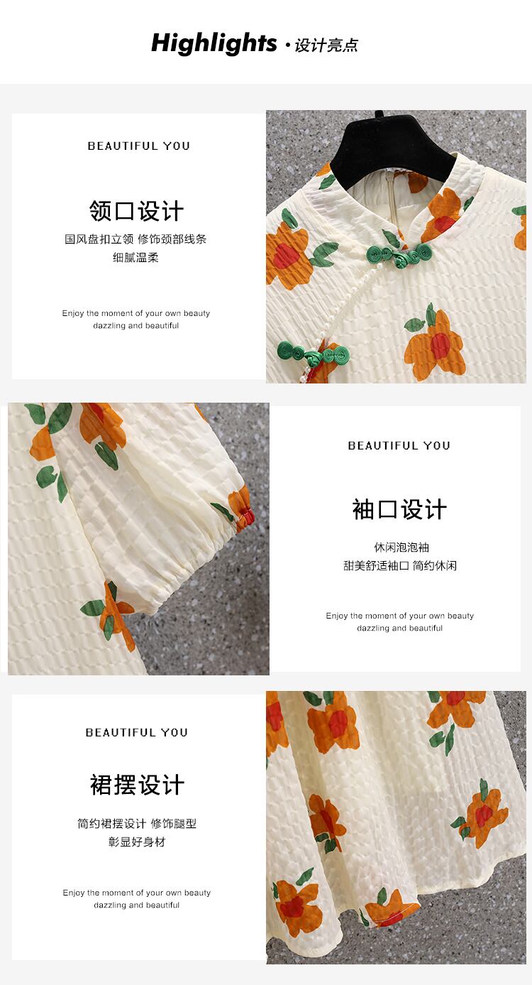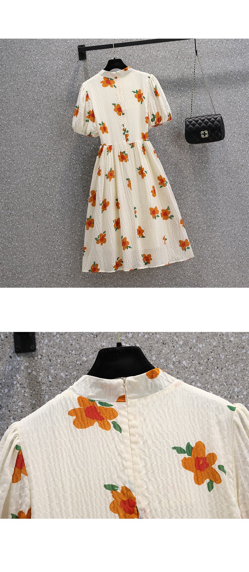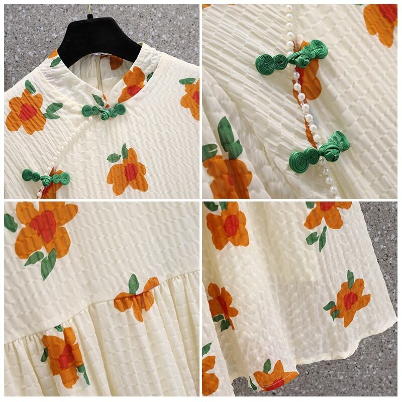 感覚チャイナ女性の 2022 夏プラスサイズの女性のレトロなスタンドカラーブロークンフラワーウエスト痩身新しいドレス 大きめサイズ サマー 夏物 フラワーデザイン 8884149154340617