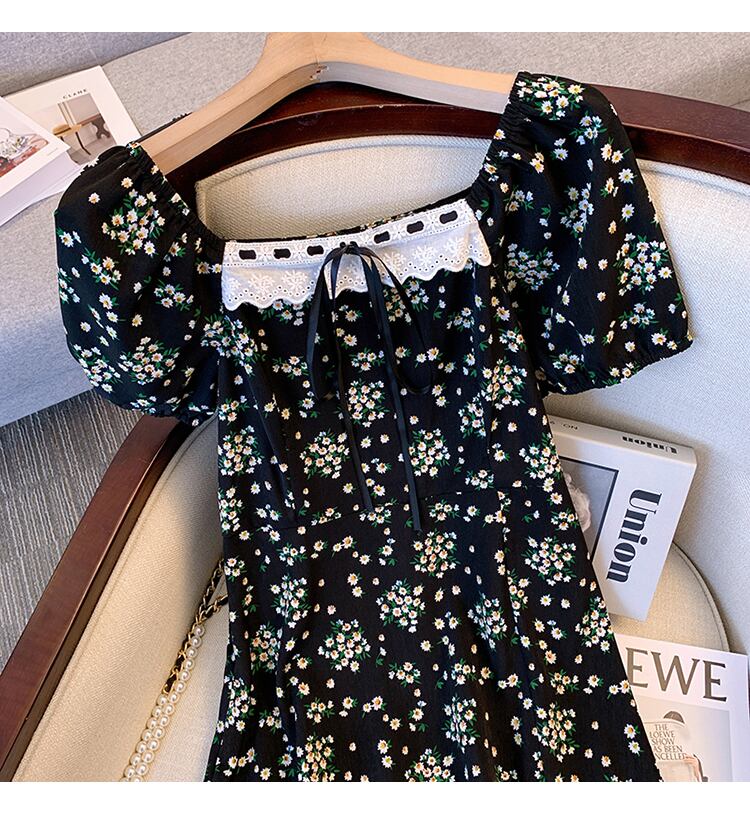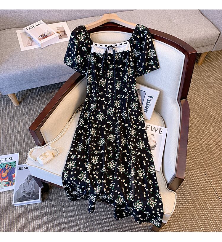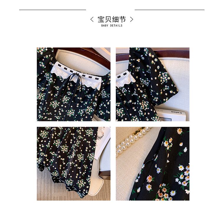 大サイズの婦人服 2022 夏の新脂肪姉妹ファッションフレンチ弓ブロークンフラワーウエスト薄いドレスの女性 リボン 大きめサイズ サマー 夏物 フラワーデザイン 8884190073811165