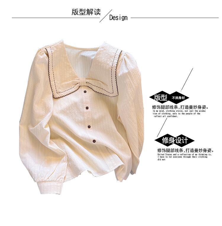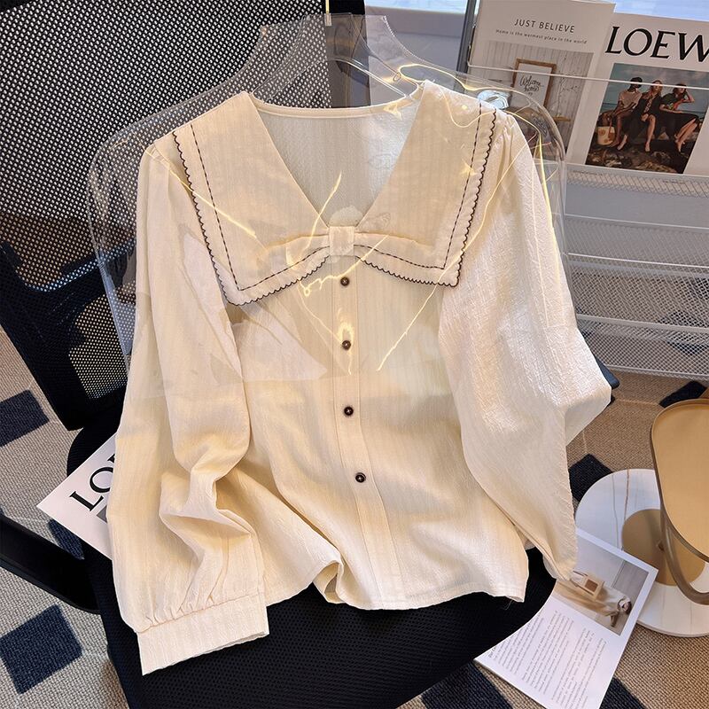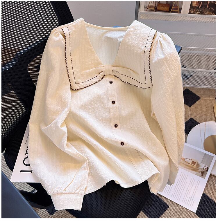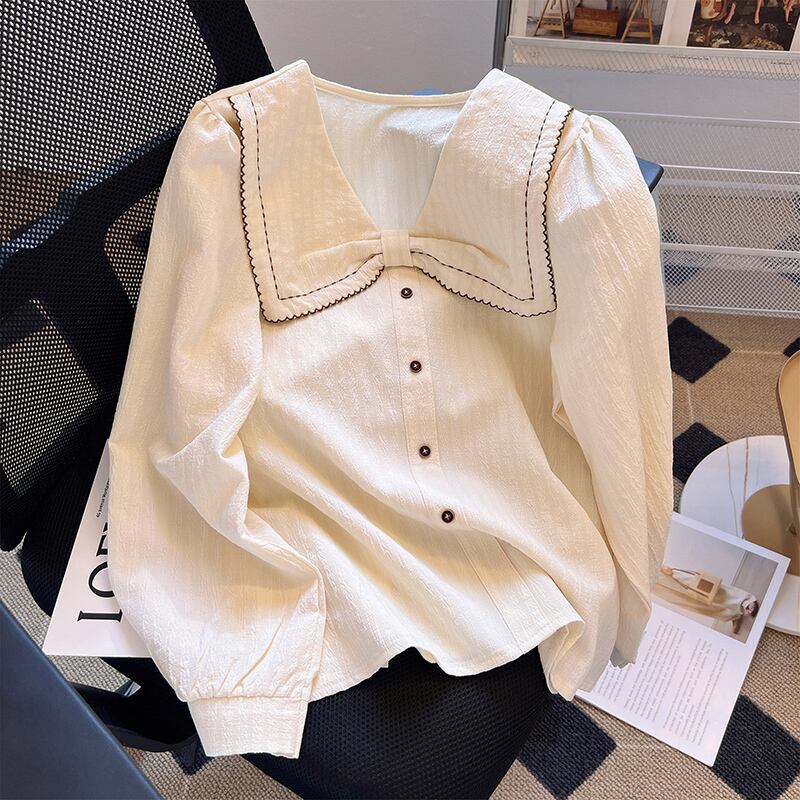 大きいサイズの婦人服 2022 ファットシスター秋の新しいスタイルの人形の襟フランスの薄いシャツフロントショルダー長袖トップ ロング 大きめサイズ オータム 秋物 8884178329668673