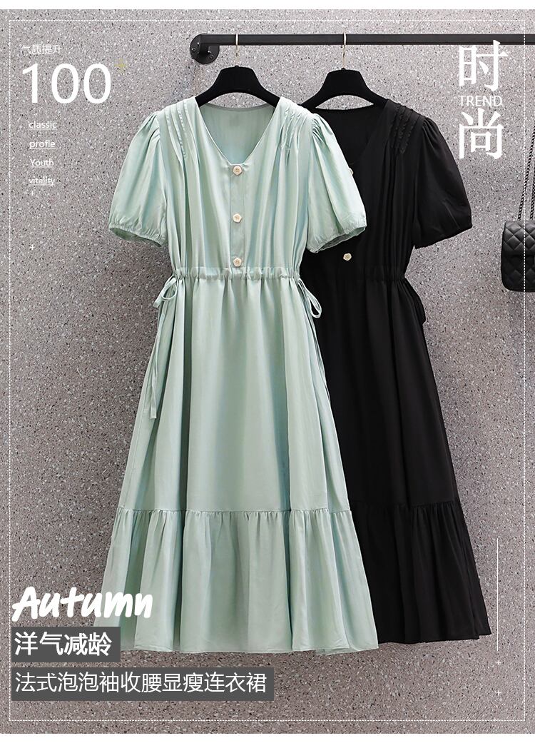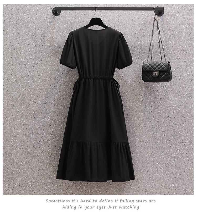 大きいサイズの婦人服2022夏の新しいファットシスターの気質は薄いフレンチウエストのドローストリングオールマッチの年齢を下げるドレスです 大きめサイズ サマー 夏物 8884158571960322