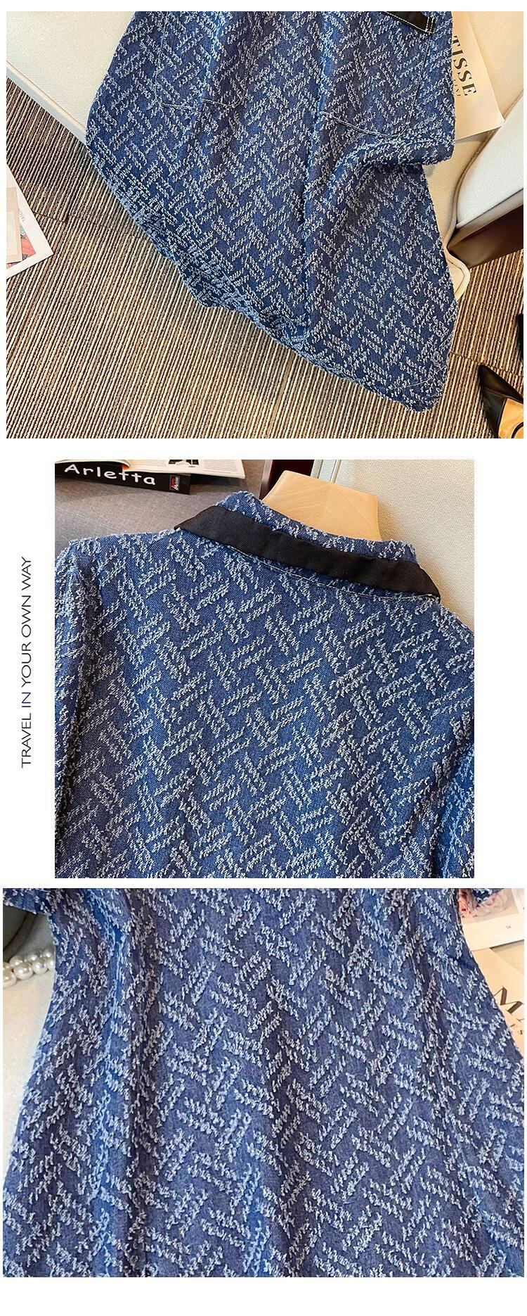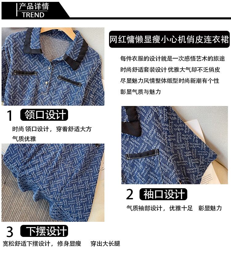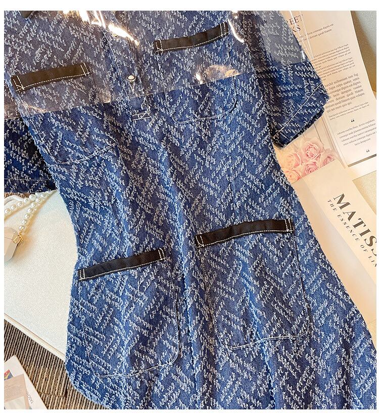 プラスサイズの婦人服 2022 ファットシスター夏新年齢削減カバーベリーカジュアルミドル丈シャツ襟デニムドレス 大きめサイズ サマー 夏物 8884174452794817