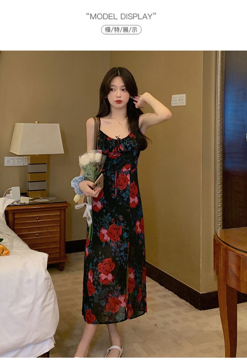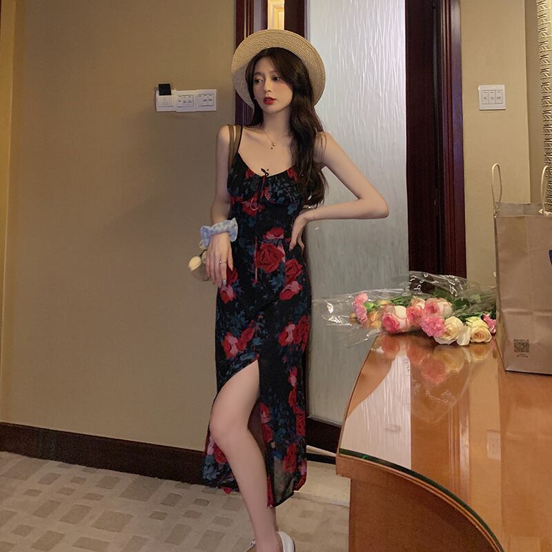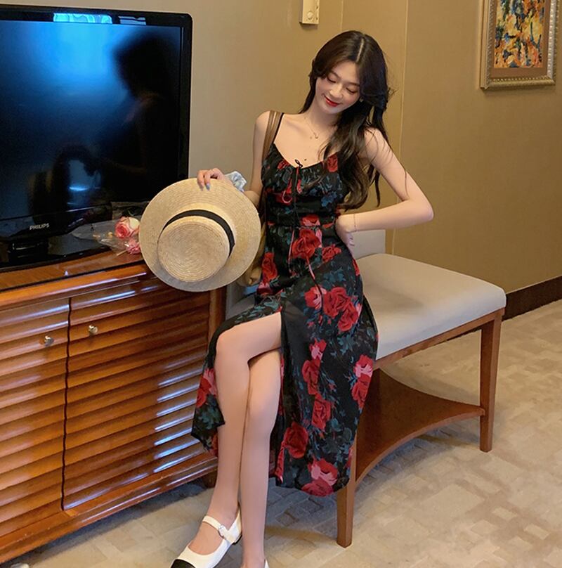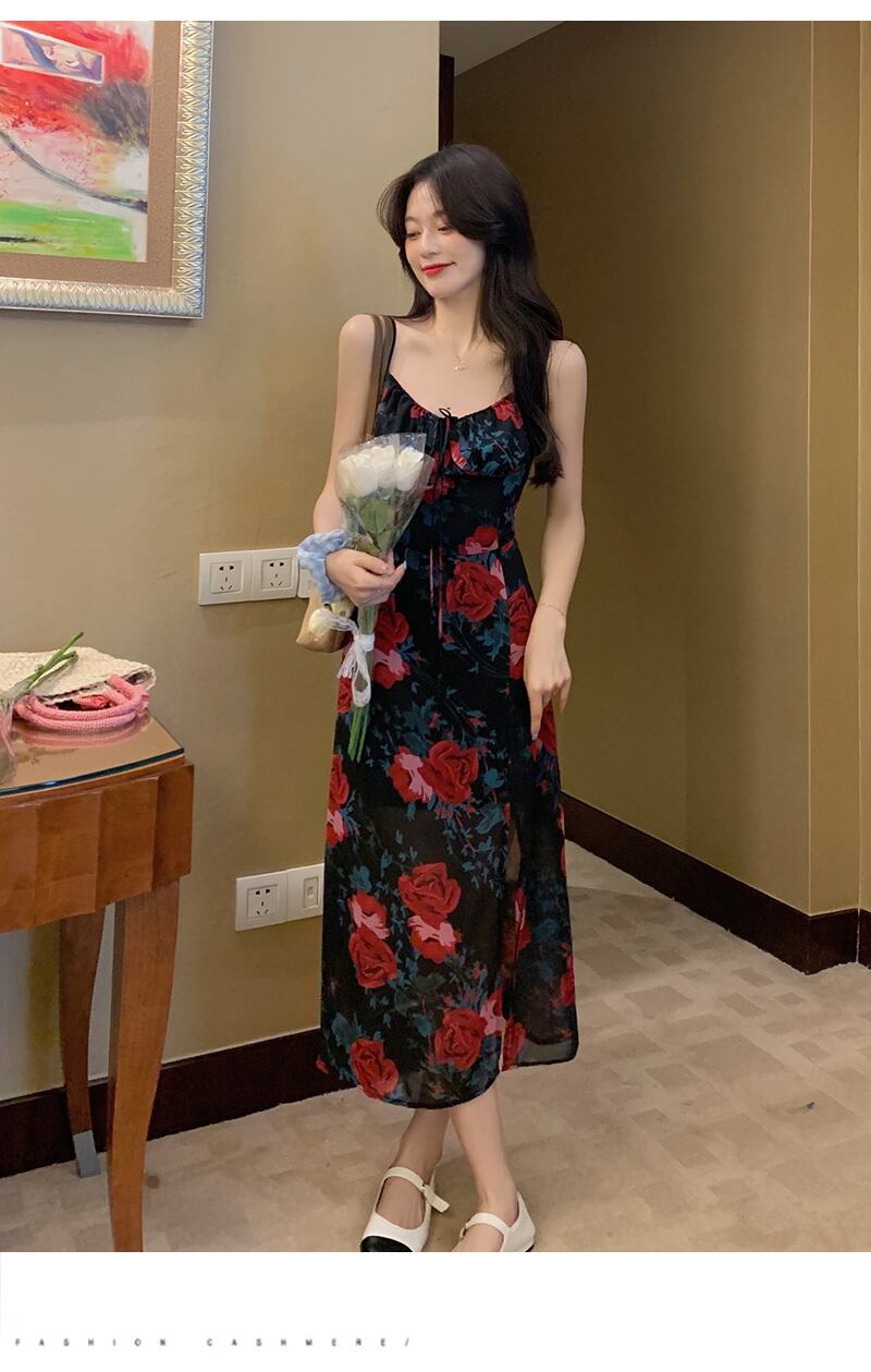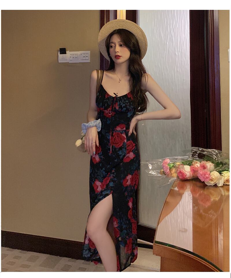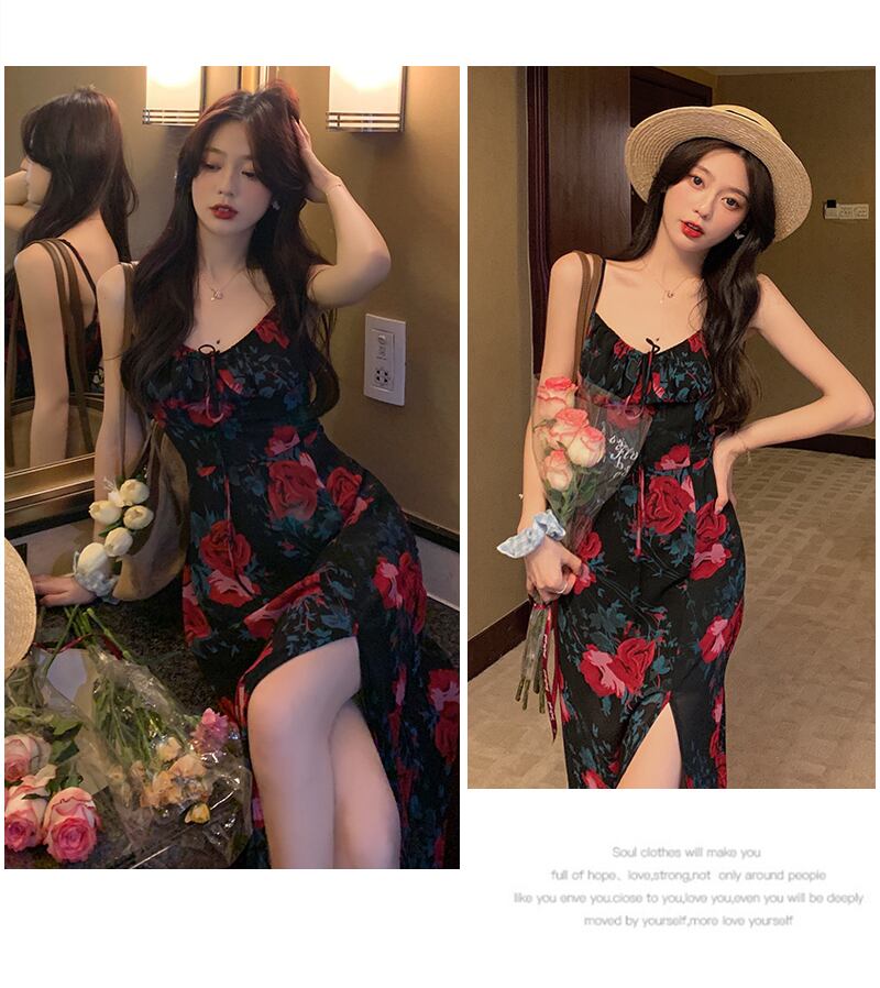大きいサイズの婦人服2022ファットシスター夏の新しいファッションスリムでスリムなローズスリングスプリットドレス 大きめサイズ サマー 夏物 8884135186177374