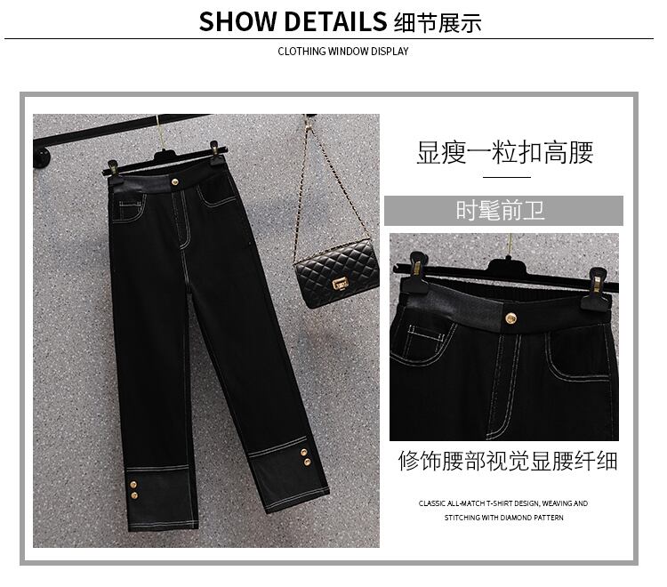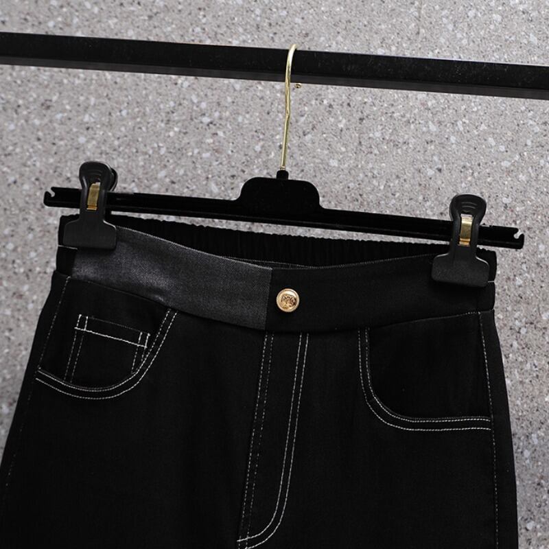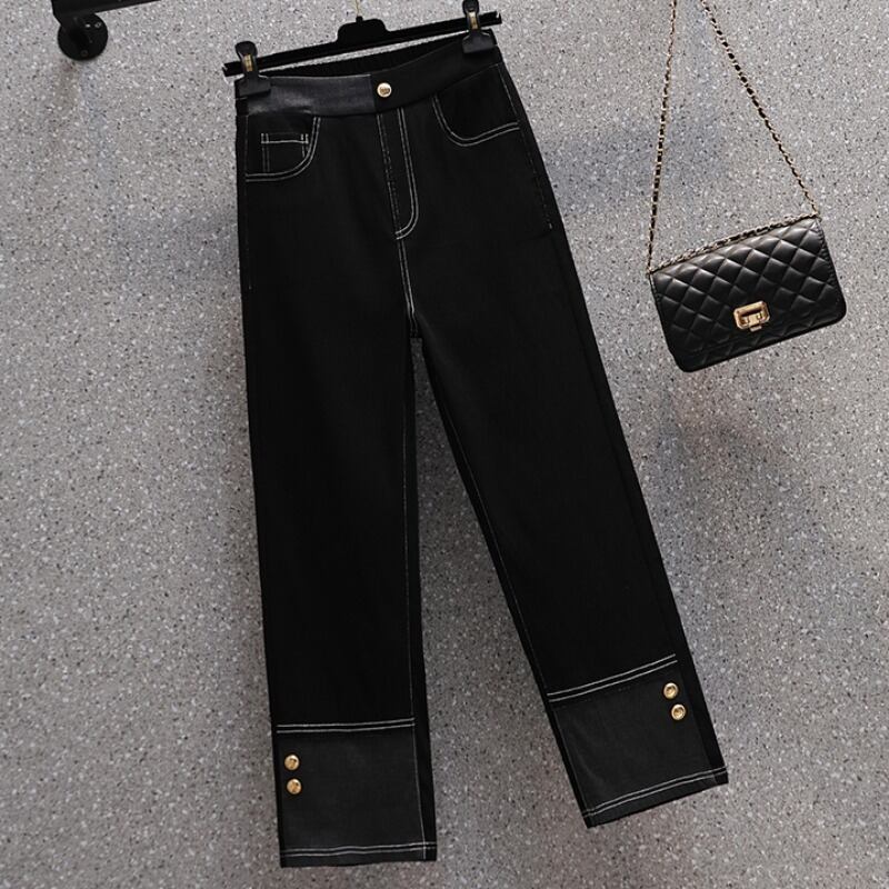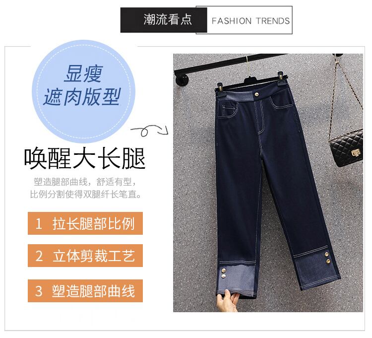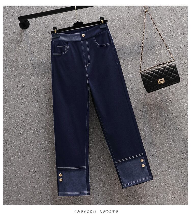 大きいサイズの婦人服 2022 秋の新しい太った姉妹ハイウエスト弾性ウエスト弾性ウエストオールマッチカジュアルジーンズ エラスティック 伸縮 大きめサイズ オータム 秋物 888416944659149
