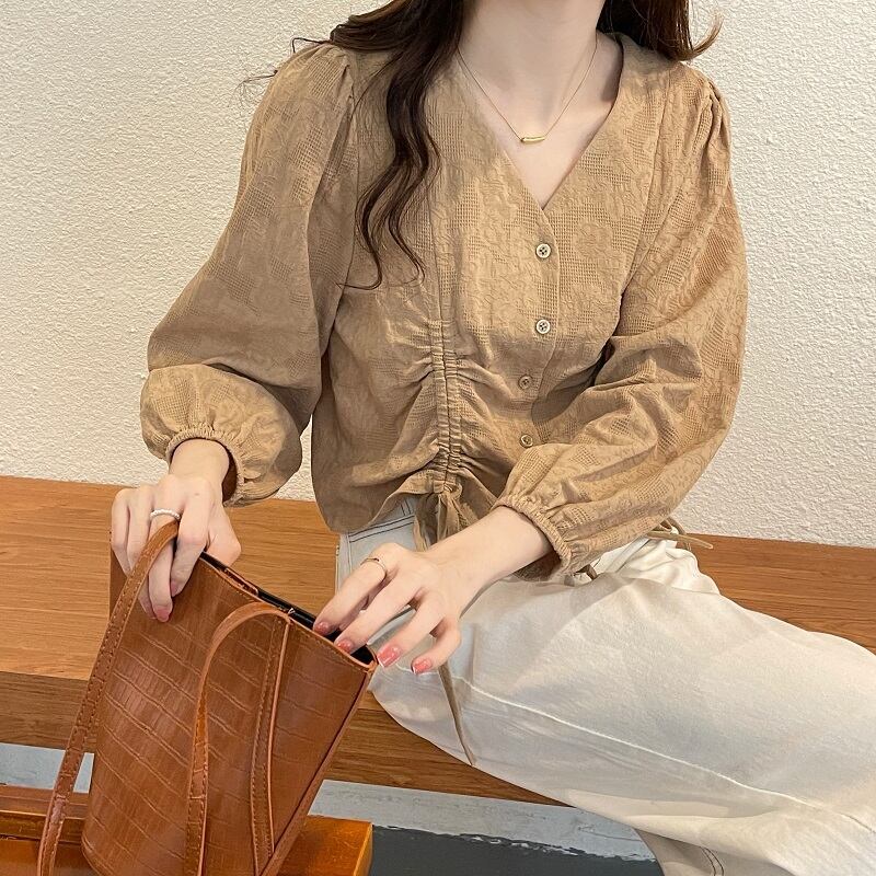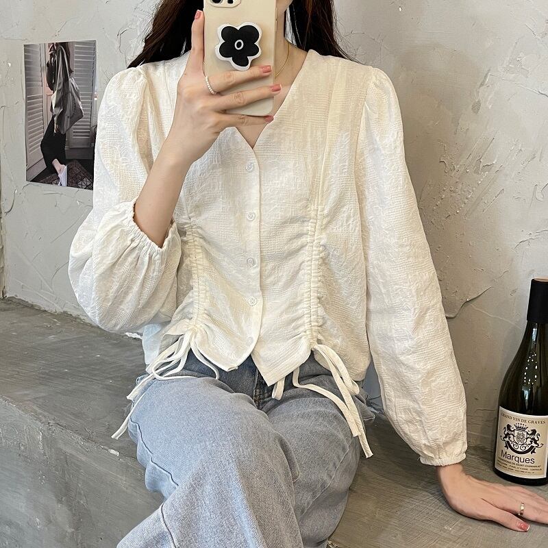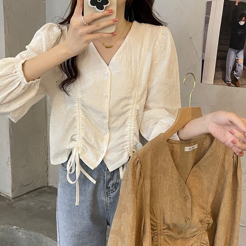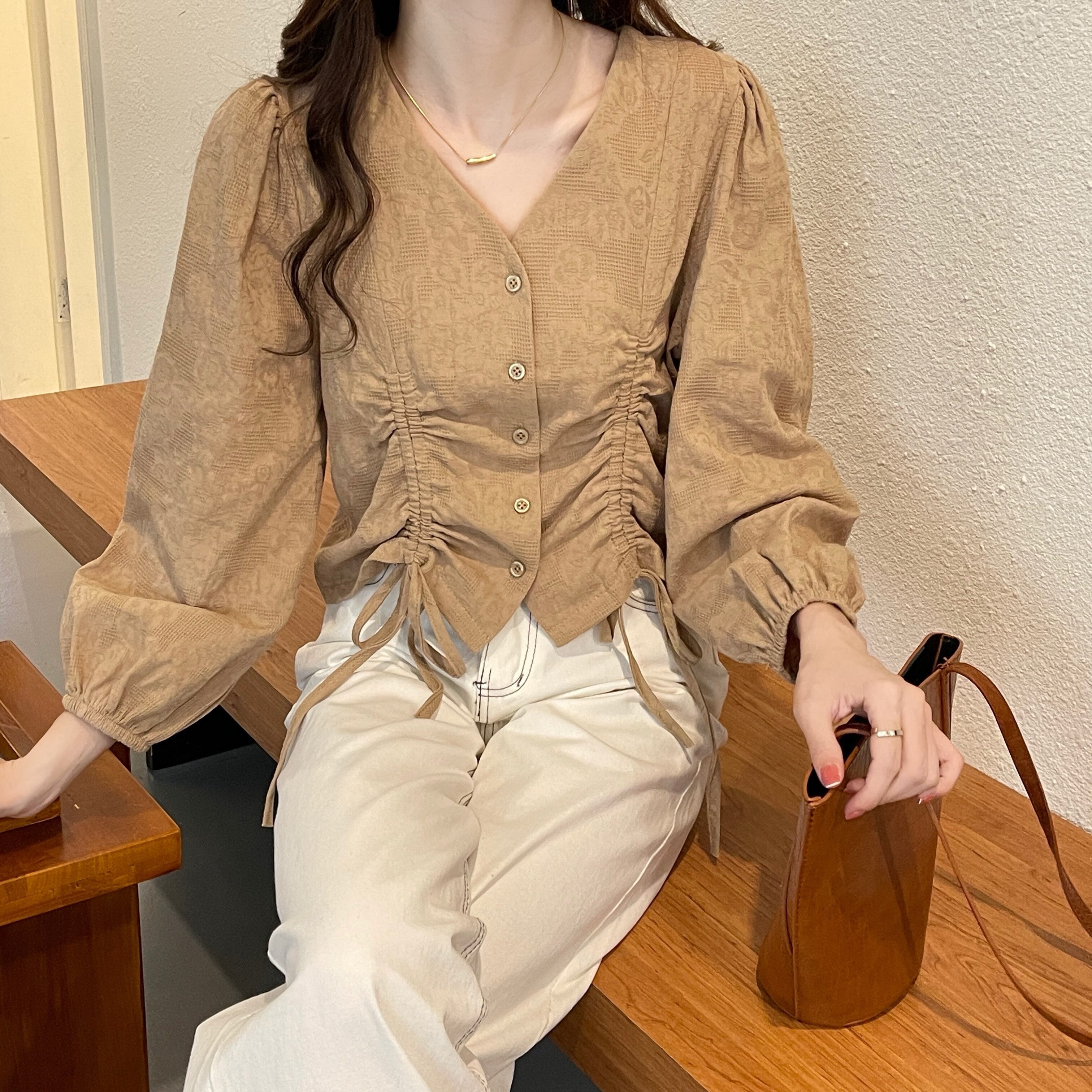 大きいサイズの婦人服 2022 ファットシスター秋の新しいフランスのレトロな長袖シャツのデザインの気質ショートトップ ロング 大きめサイズ オータム 秋物 888413094577052