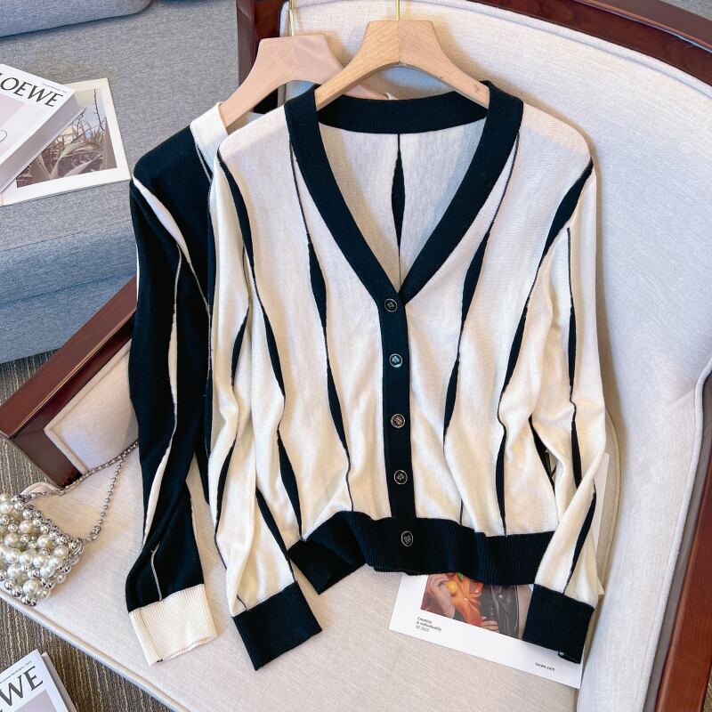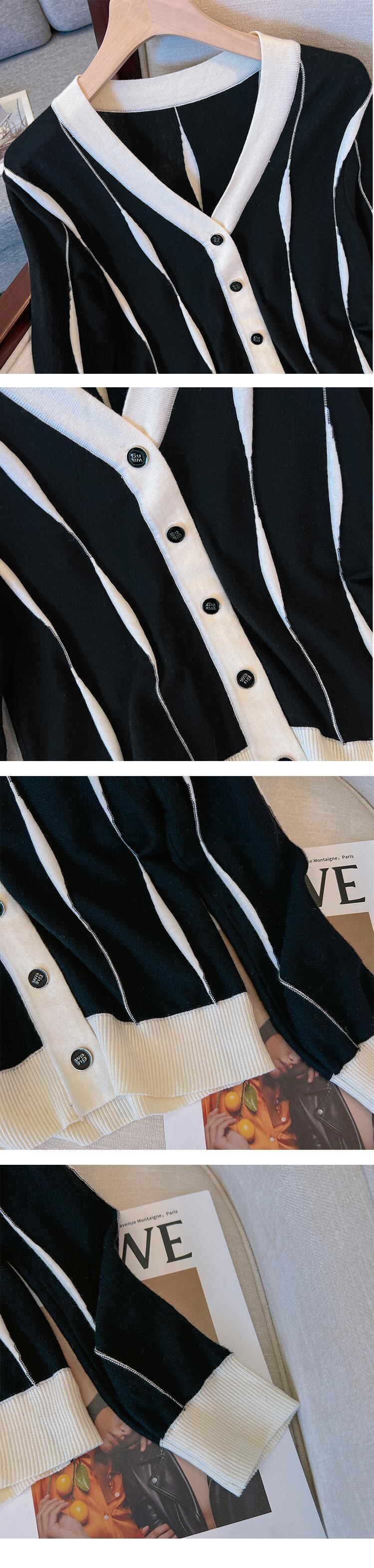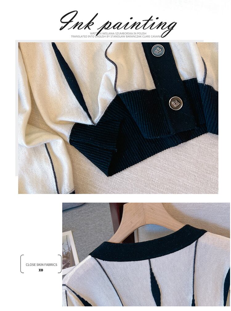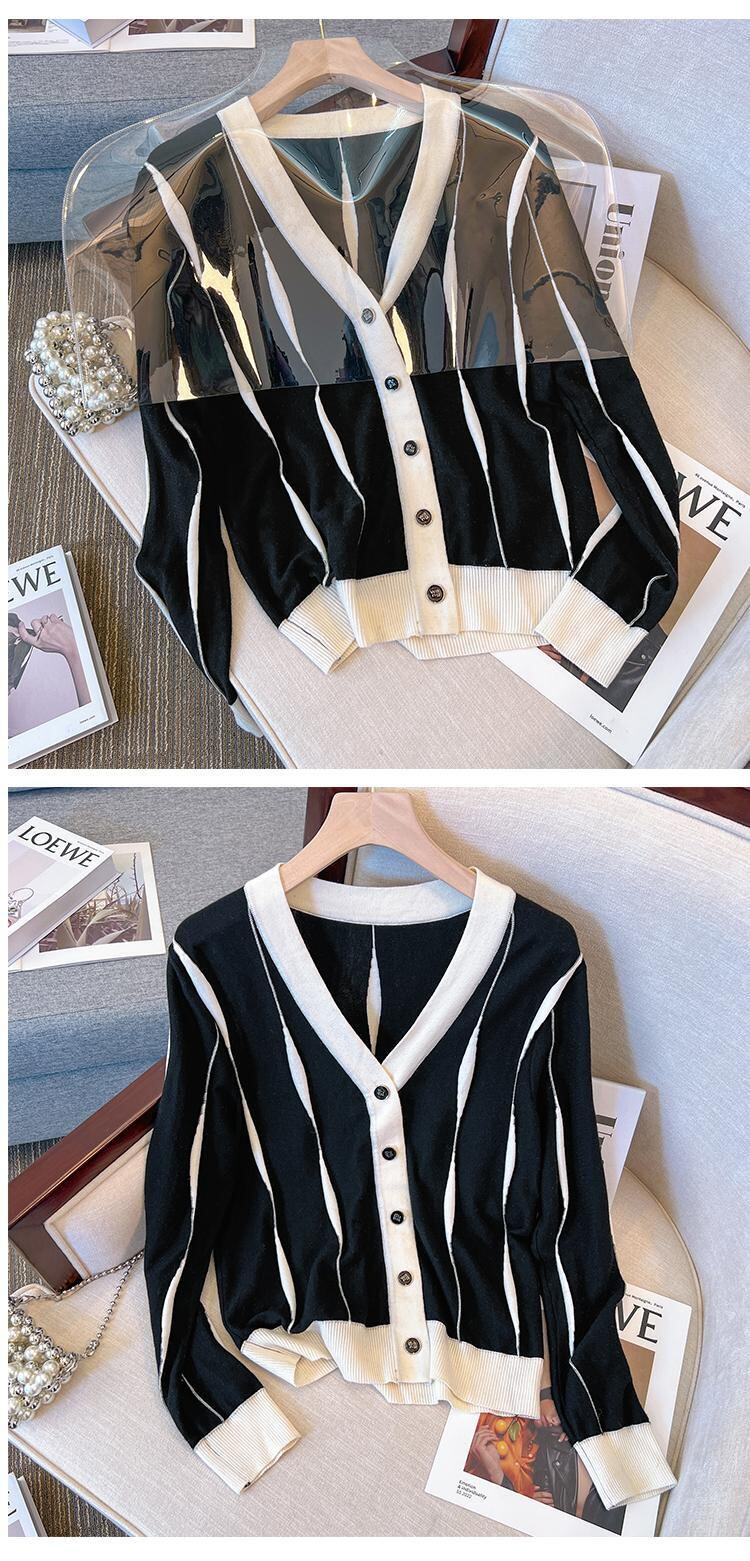 大きいサイズの婦人服 2022 ファットシスター秋の新しいルーズで薄いファッションニットカーディガン長袖コントラストカラーコート女性 ロング 大きめサイズ オータム 秋物 8884151054505148