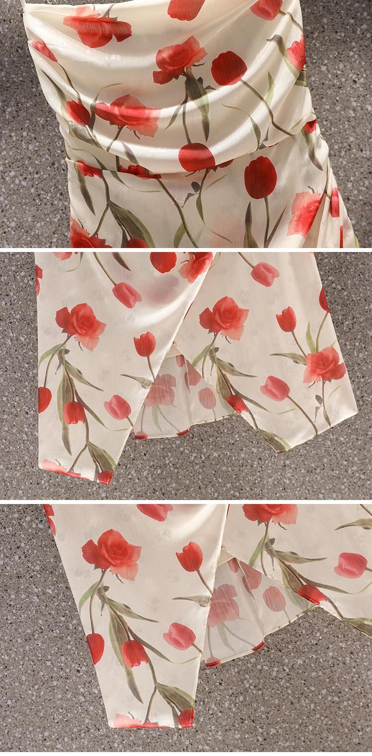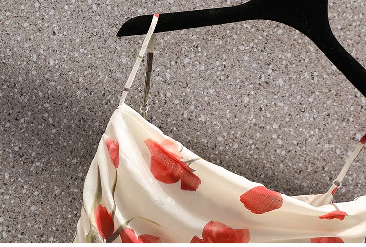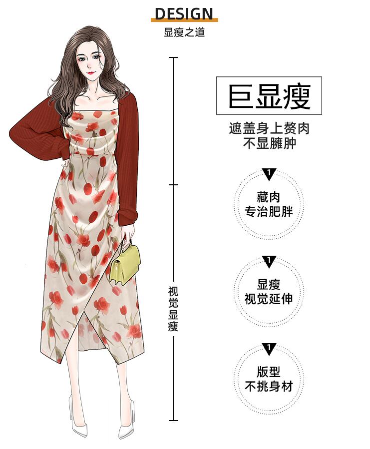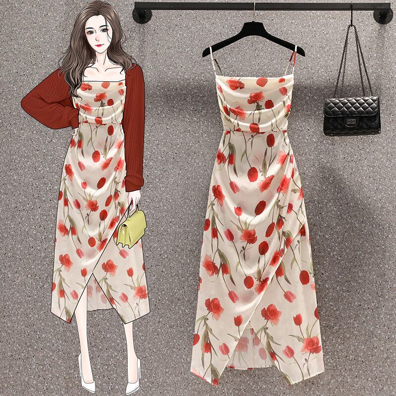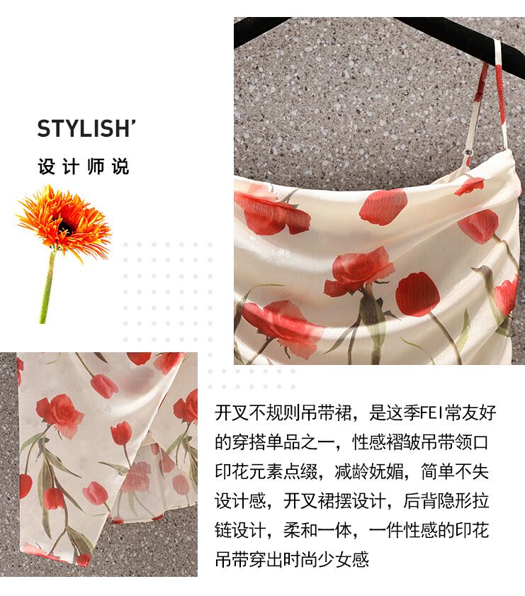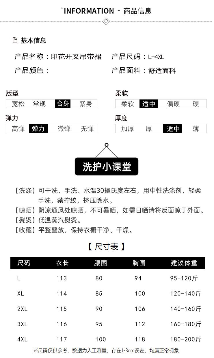大きいサイズの婦人服 2022 ファットシスター夏の新しい薄いセクションスリムウエストスリムスリットプリントサスペンダードレス 大きめサイズ サマー 夏物 8884141627793725