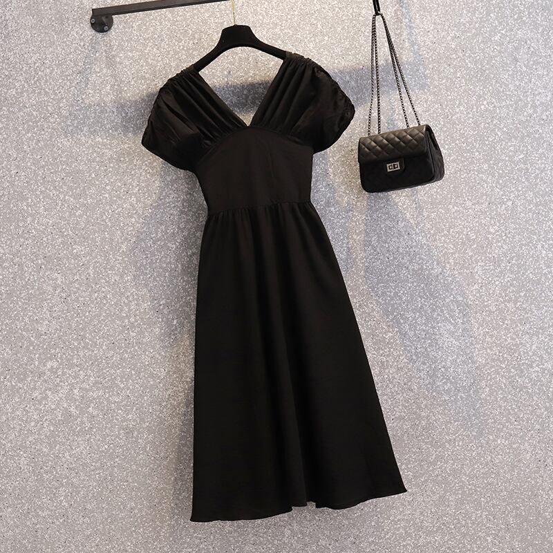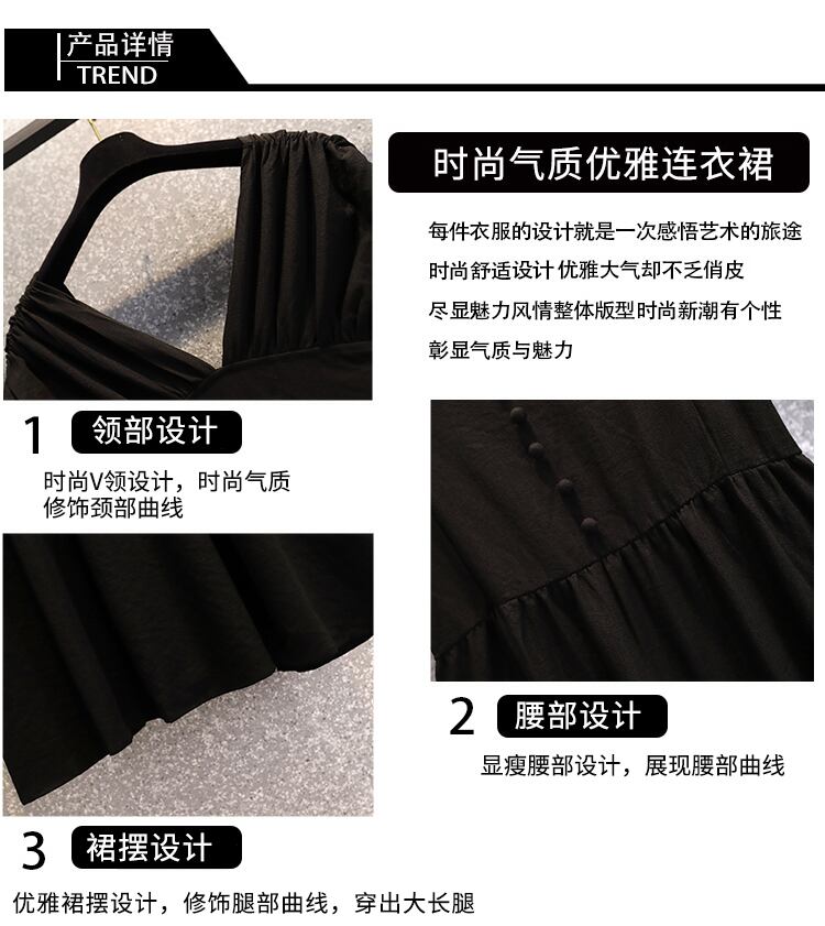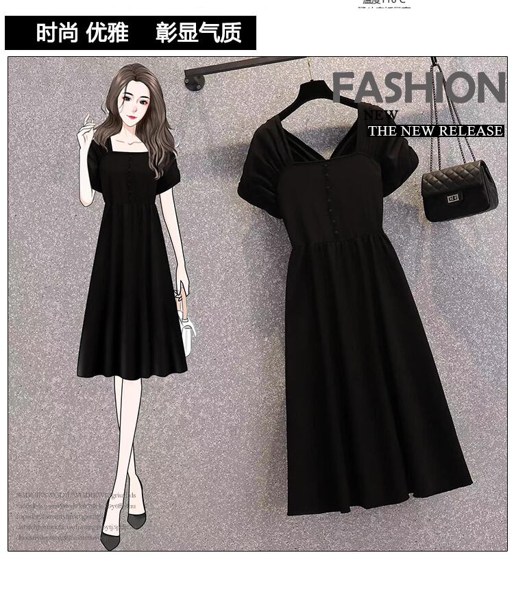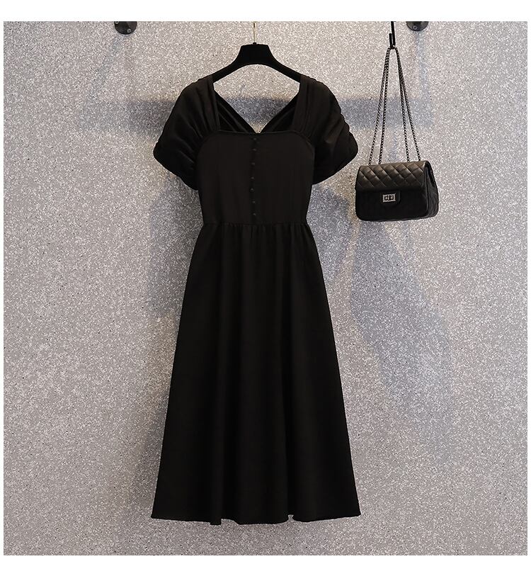 大きいサイズの婦人服2022ファットシスター夏の新しいフレンチスタイルのウエストと薄い気質のヘップバーンスタイルのスクエアカラーのドレス 大きめサイズ サマー 夏物 スクウェア 8884170003976330