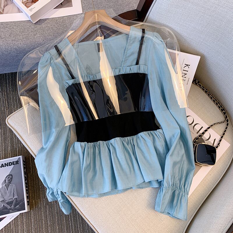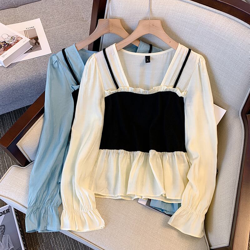大きいサイズの婦人服 2022 ファット シスター 秋の新しいファッション オールマッチ薄い長袖シャツ ステッチ ウエスタン スタイルの小さなシャツの女性 ロング 大きめサイズ オータム 秋物 8884129511548172