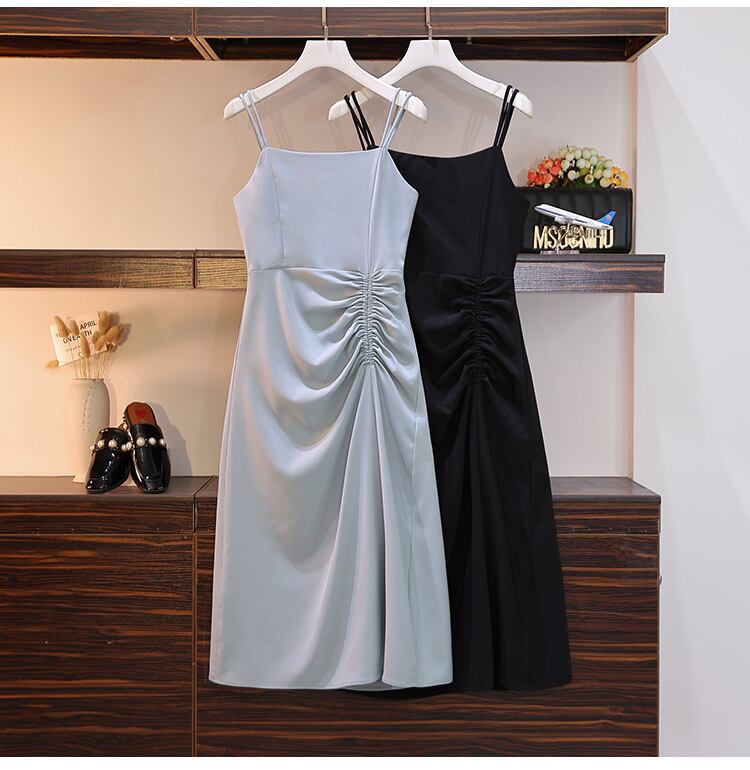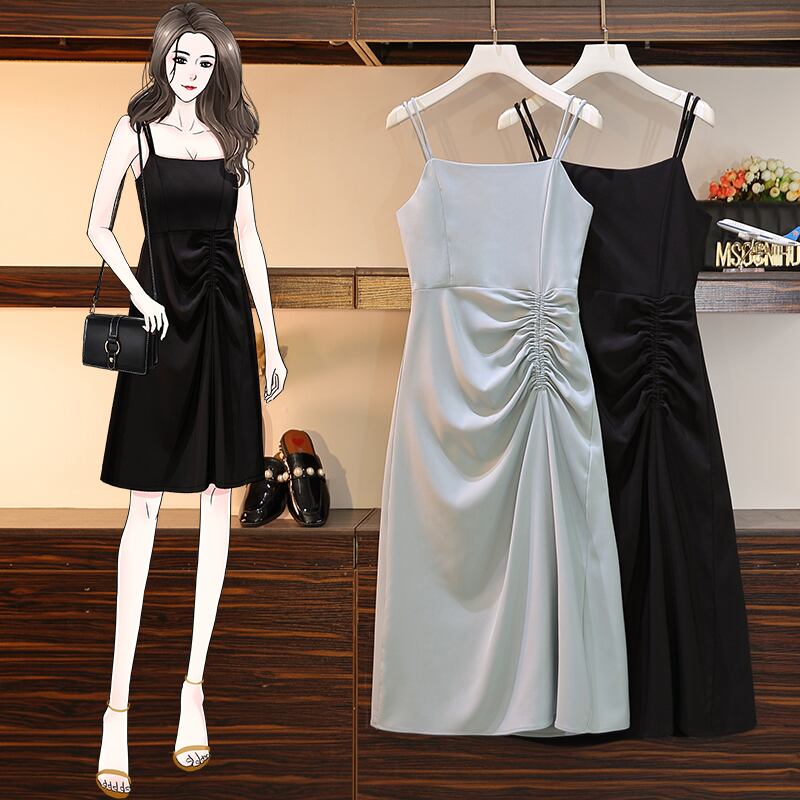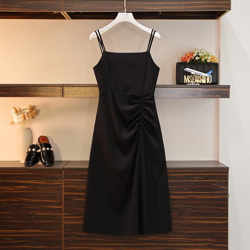 大きいサイズの婦人服 2022 トレンディな女性の夏の新しい太った姉妹のファッションは、肉を覆い、胃を覆い、薄いオールマッチのサスペンダードレスを見せます 大きめサイズ サマー 夏物 8884126864631207