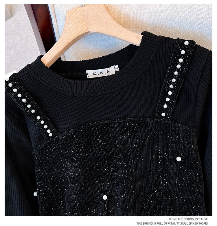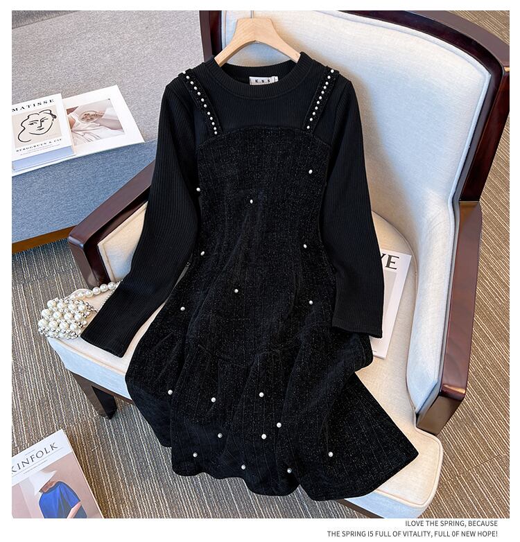 大きいサイズの婦人服 2022 トレンディな女性の秋の新しいファットシスターヘップバーンスタイルのルーズなフランスの重工業のビーズのドレス 大きめサイズ オータム 秋物 8884180511361930