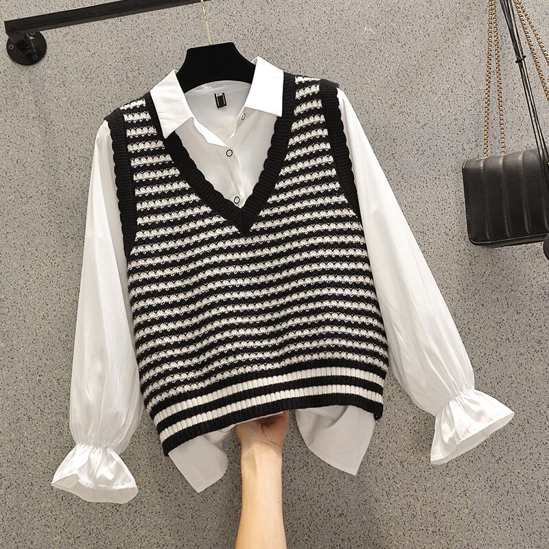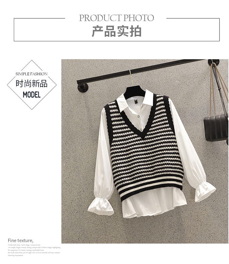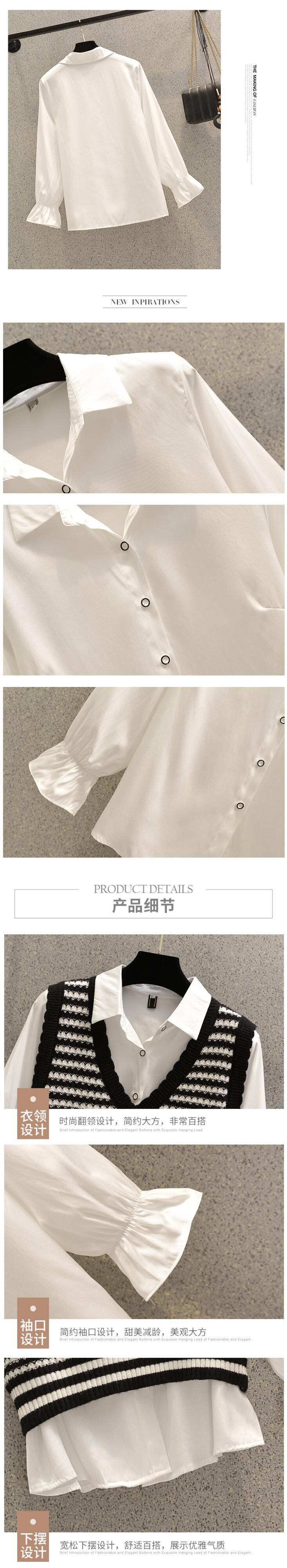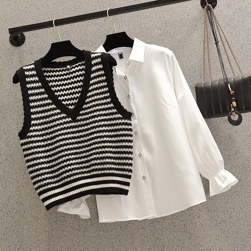 大きいサイズの婦人服 2022 脂肪姉妹秋の新ファッション V ネックオールマッチベストデザインニッチシャツ 2 点セット 大きめサイズ オータム 秋物 Vネック 8884196711788202