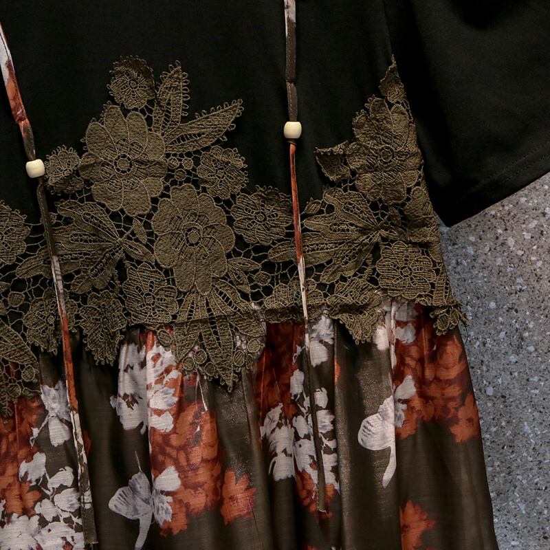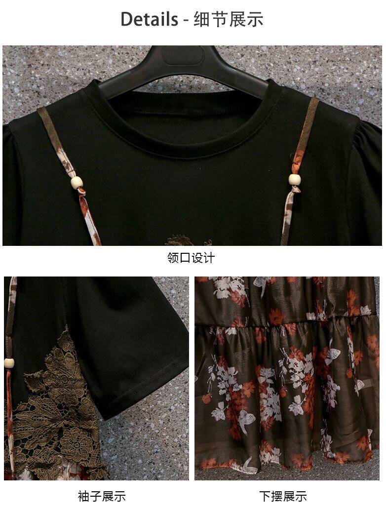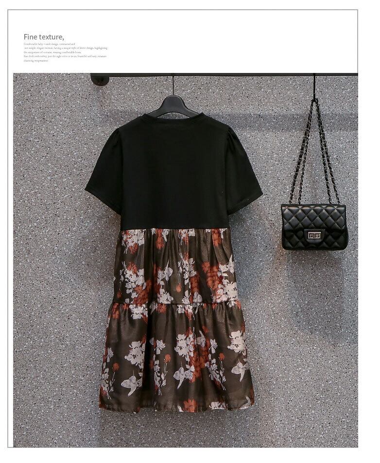 大きいサイズの婦人服2022ファットシスター夏の新しいデザイン感のあるミドル丈のeignスタイルの薄いファッション花柄のドレス 大きめサイズ サマー 夏物 8884184474802119