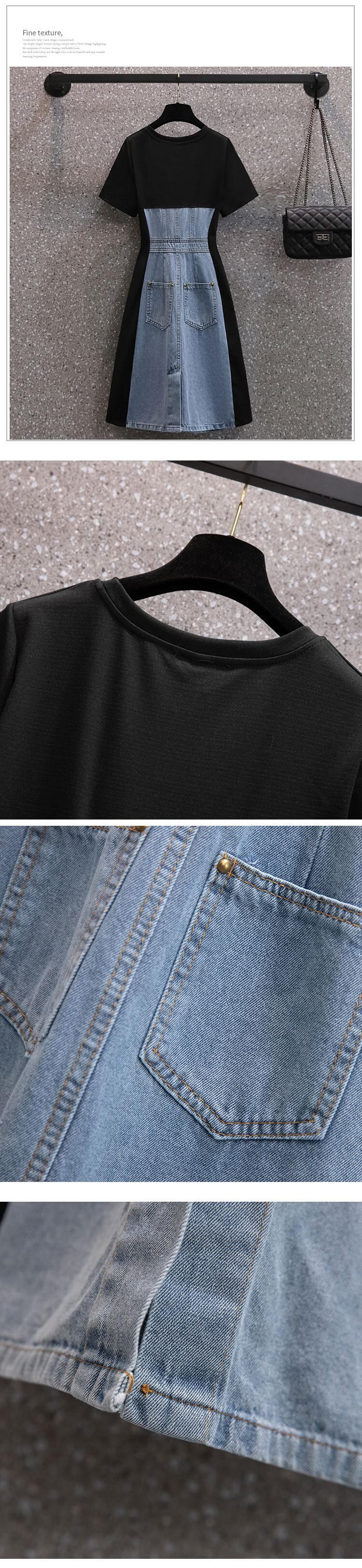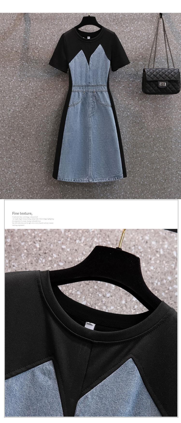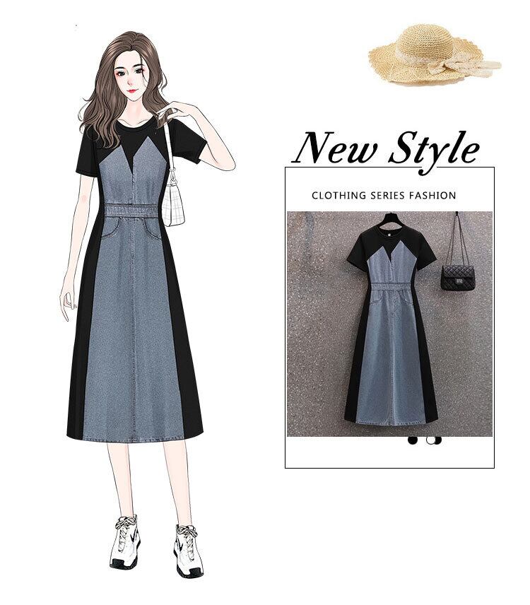 大きいサイズの婦人服2022ファットシスター夏の新しいファッションバージョンの年齢を減らす薄いデニムのステッチの半袖ドレス 大きめサイズ サマー 夏物 8884126445320594