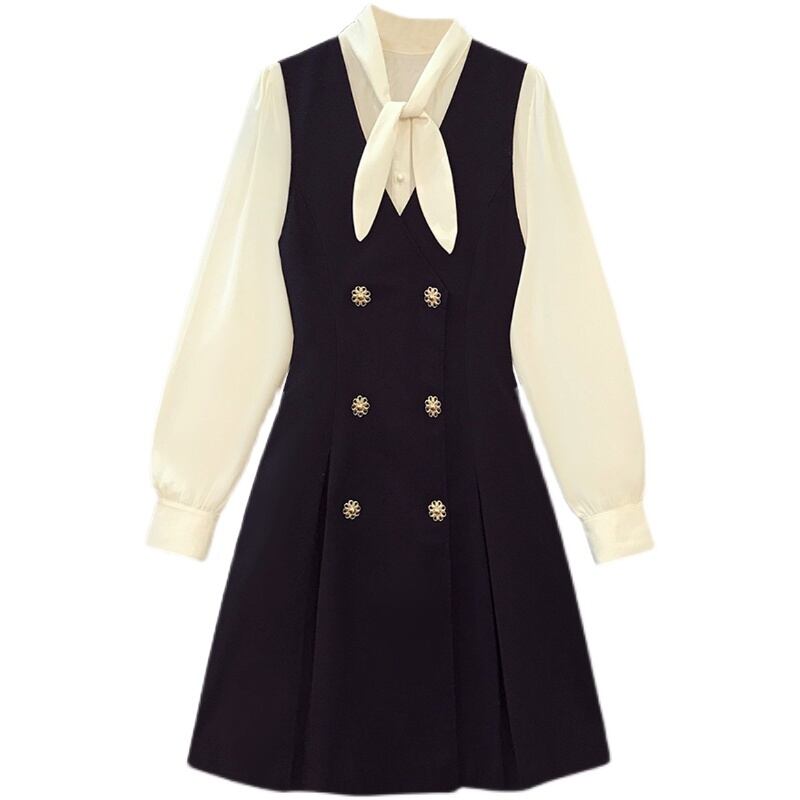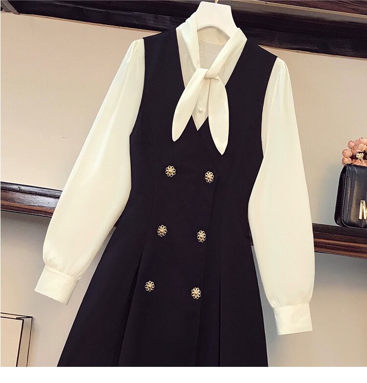 大きいサイズの婦人服 2022 ファットシスター秋の新しい洋風ウエストフレンチシャツ痩身ドレスツーピーススーツ 大きめサイズ オータム 秋物 8884180044861570