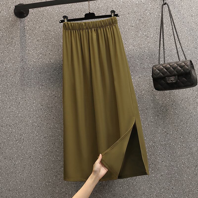 大きいサイズの婦人服 2022 夏の新しいファットシスターファッション弾性ウエストオールマッチデザインハイウエストスリットスカート ハイウェスト エラスティック 伸縮 大きめサイズ サマー 夏物 8884169066233002
