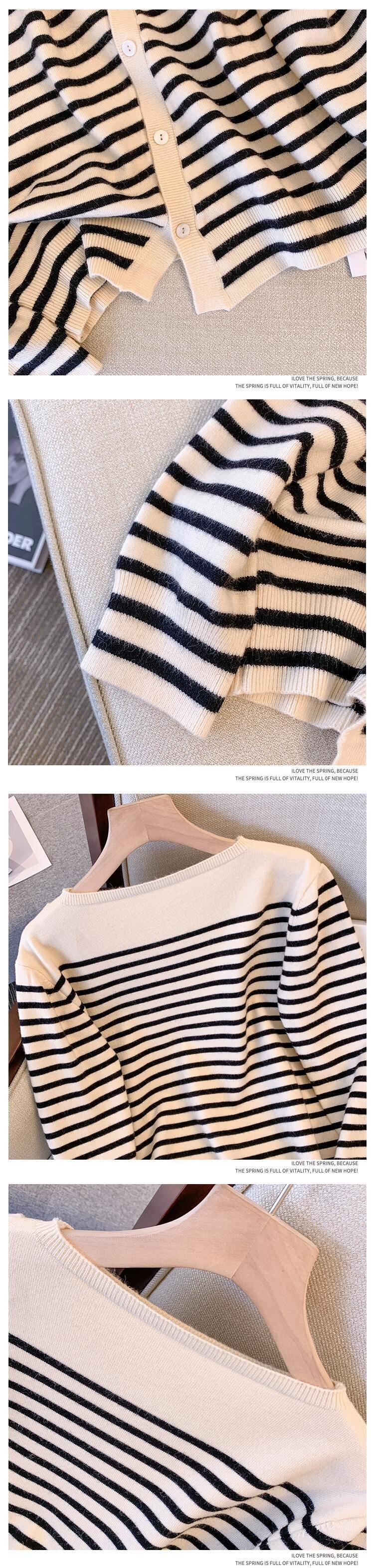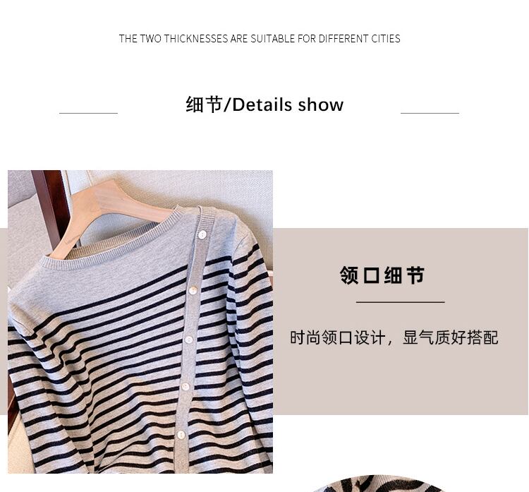 大きいサイズの婦人服 2022 トレンディな女性の秋の新しいファット シスター ウエスタン スタイル ニット年齢を減らすゆったりした薄い縞模様のオール マッチ セーター 大きめサイズ オータム 秋物 ストライプ 8884168788622635
