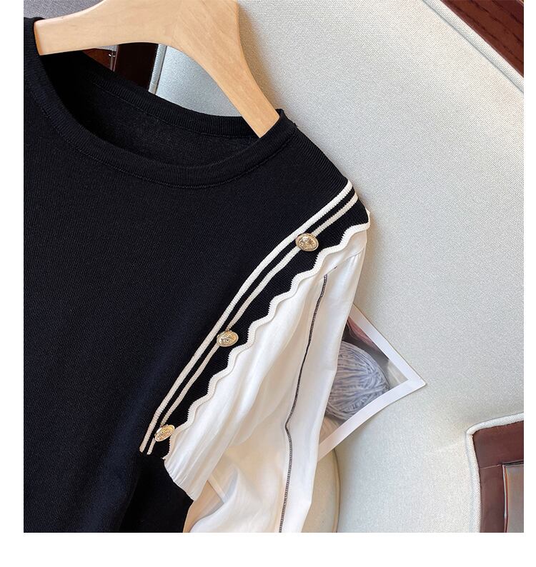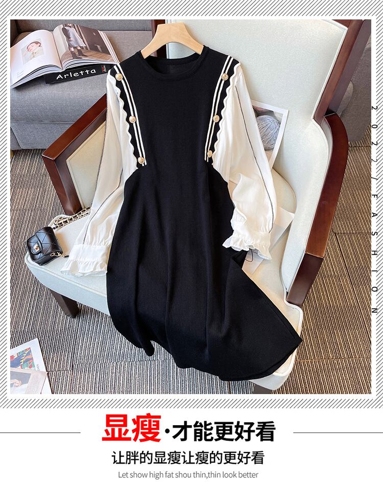 大きいサイズの婦人服2022ファットシスター秋の新しいスタイルの痩身と年齢を減らすデザインセンスステッチフェイクツーピースニットドレス 大きめサイズ オータム 秋物 8884132457645177