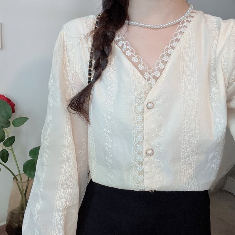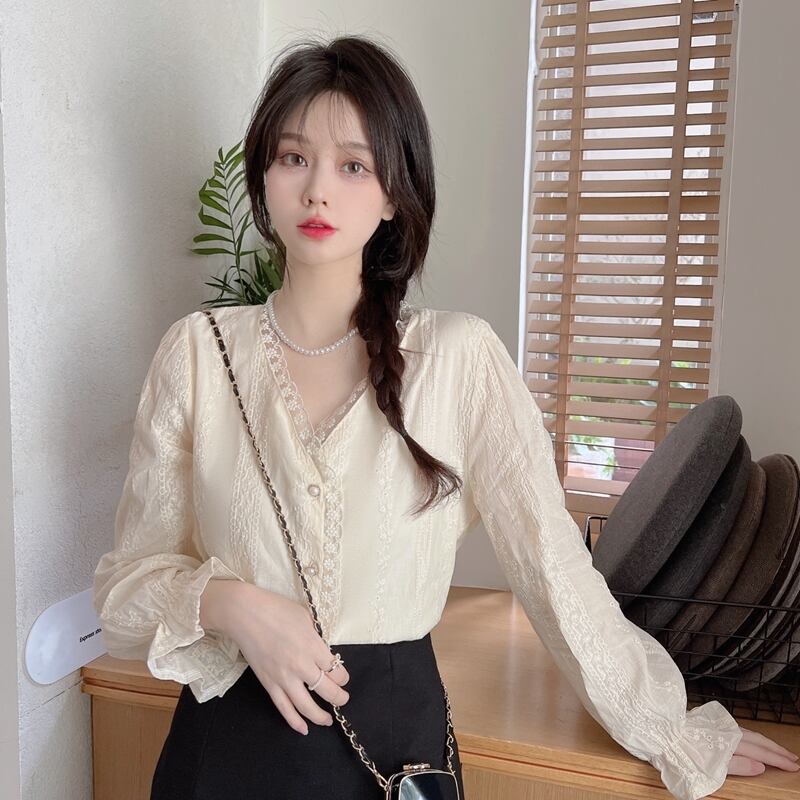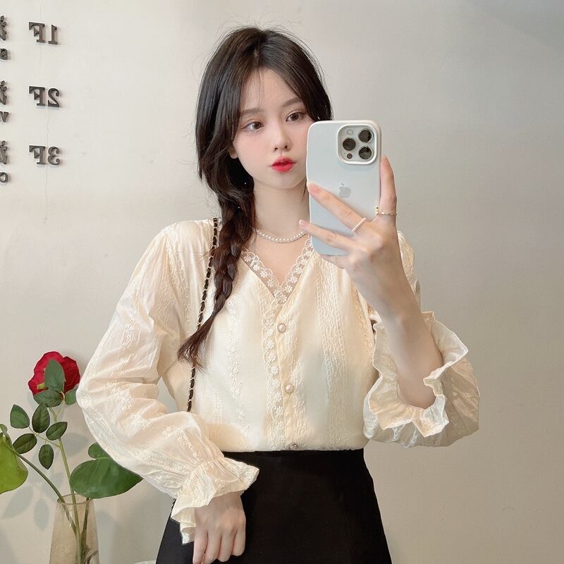 大きいサイズの婦人服 2022 流行の女性の秋の新しいファット シスター ジェントル スタイル フレンチ デザイン感のオールマッチ洋風薄手のシャツ 大きめサイズ オータム 秋物 8884171596479725