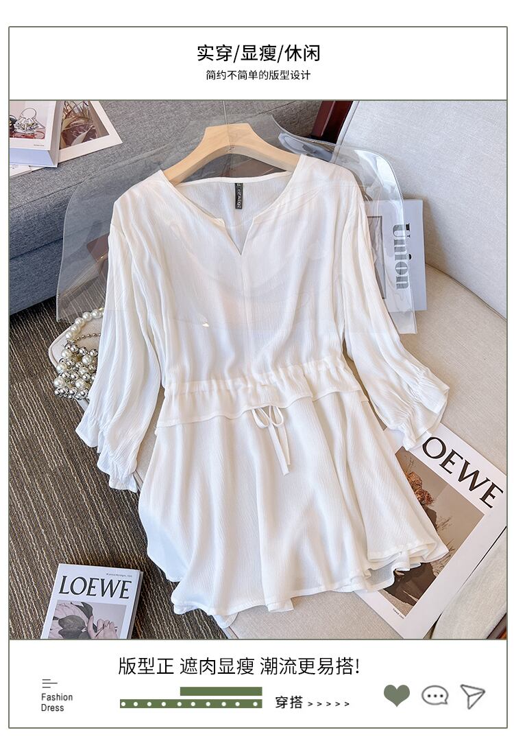 大きいサイズの婦人服 2022 ファットシスター秋の新しいウエストトップシャツは薄くてお腹をカバーする七分袖の底入れシャツ tシャツの女性 大きめサイズ オータム 秋物 8884160857796458