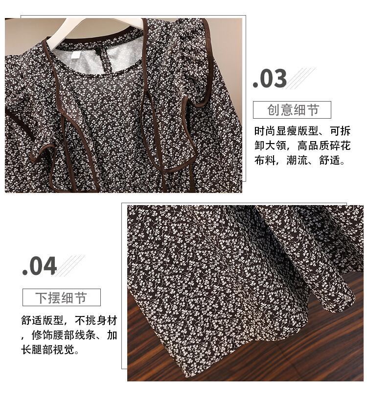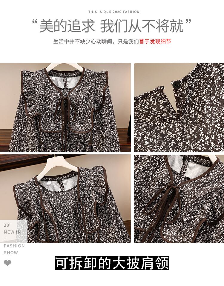 大きいサイズの婦人服2022秋の新しいスタイルのやや太った姉妹のウエストと薄い花柄のファッション菌の端のショールドレス 大きめサイズ オータム 秋物 8884183177752781