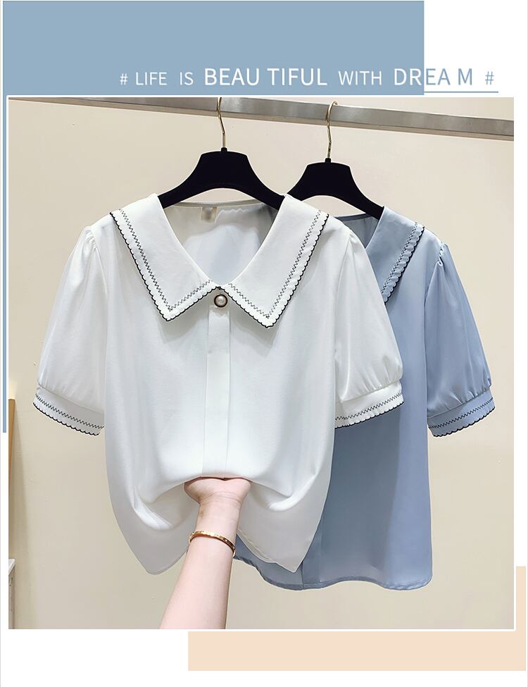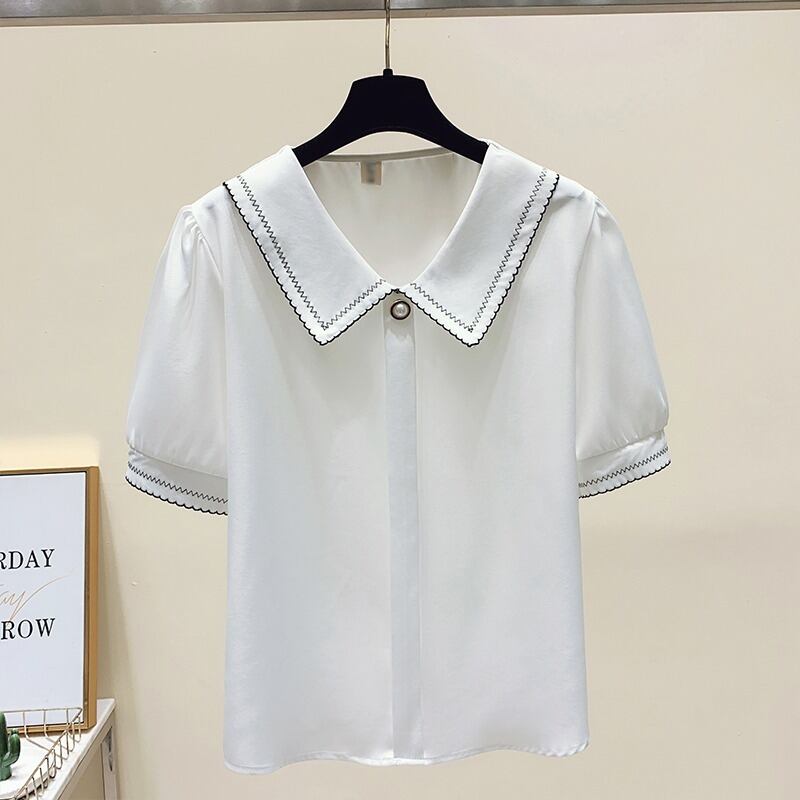 大きいサイズ 2022年夏新作 レディース 無地 薄手 ゆったり 洋風 ドールカラー オールマッチ 半袖 カジュアルシャツ 大きめサイズ サマー 夏物 ソリッドカラー 8884177396995517