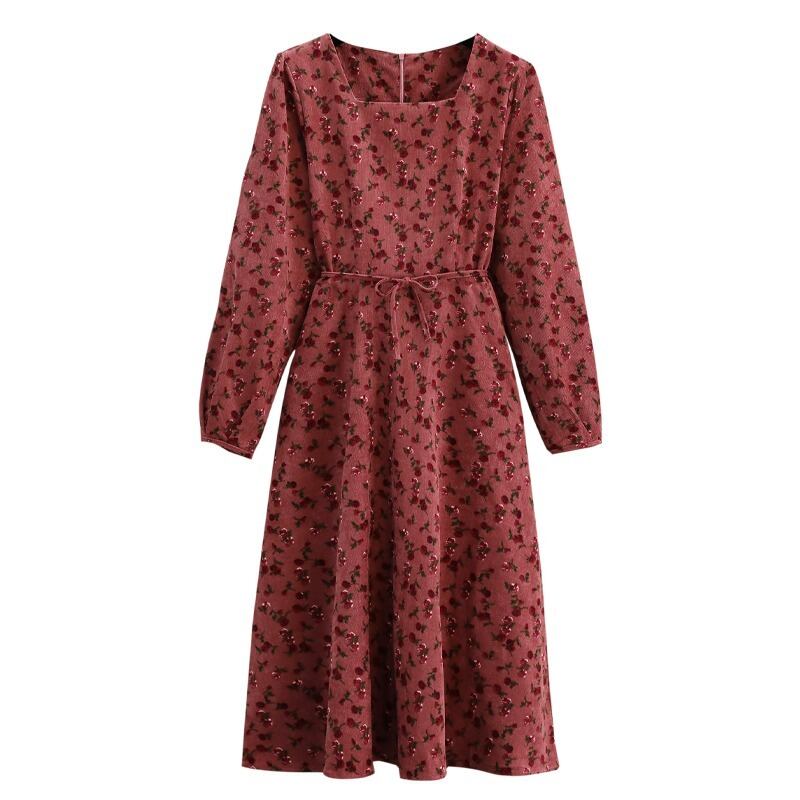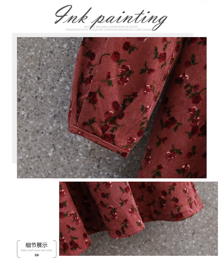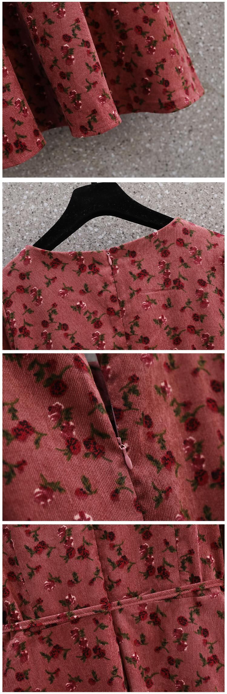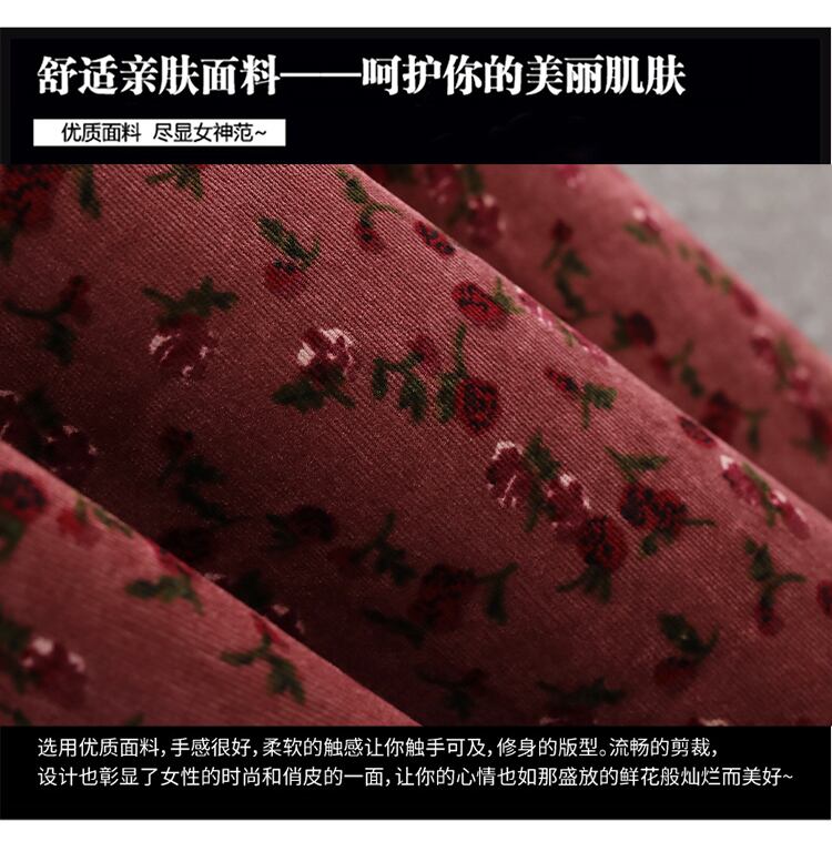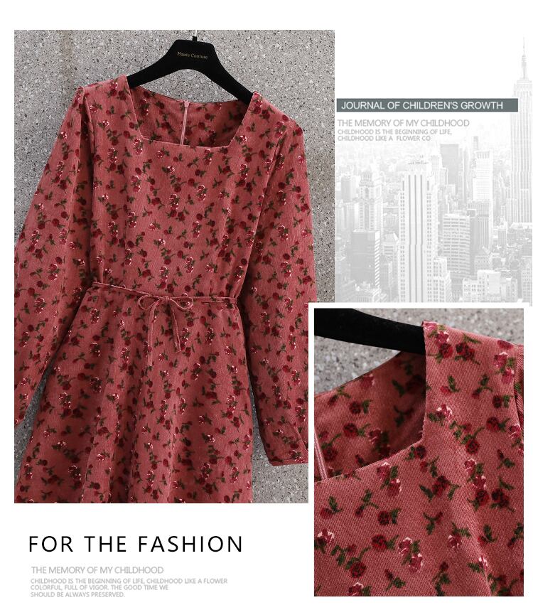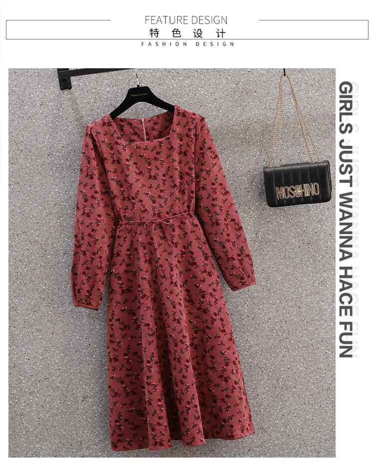 大きいサイズの婦人服 2022 トレンディな女性の秋の新しいファットシスターファッションコーデュロイは股をカバーして薄いオールマッチの花柄のドレスを見せます 大きめサイズ オータム 秋物 8884130370629411