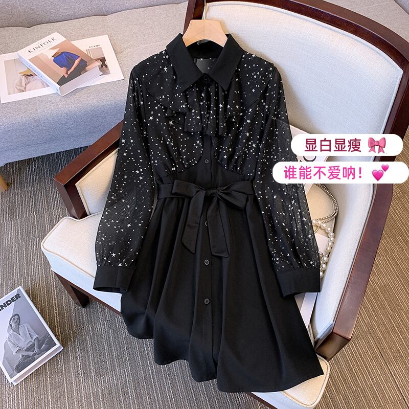 大きいサイズの婦人服2022秋の新しいファットシスターファッショナブルな気質で肉を覆い、薄いステッチを見せるフレンチカジュアルドレス 大きめサイズ オータム 秋物 8884124401881313