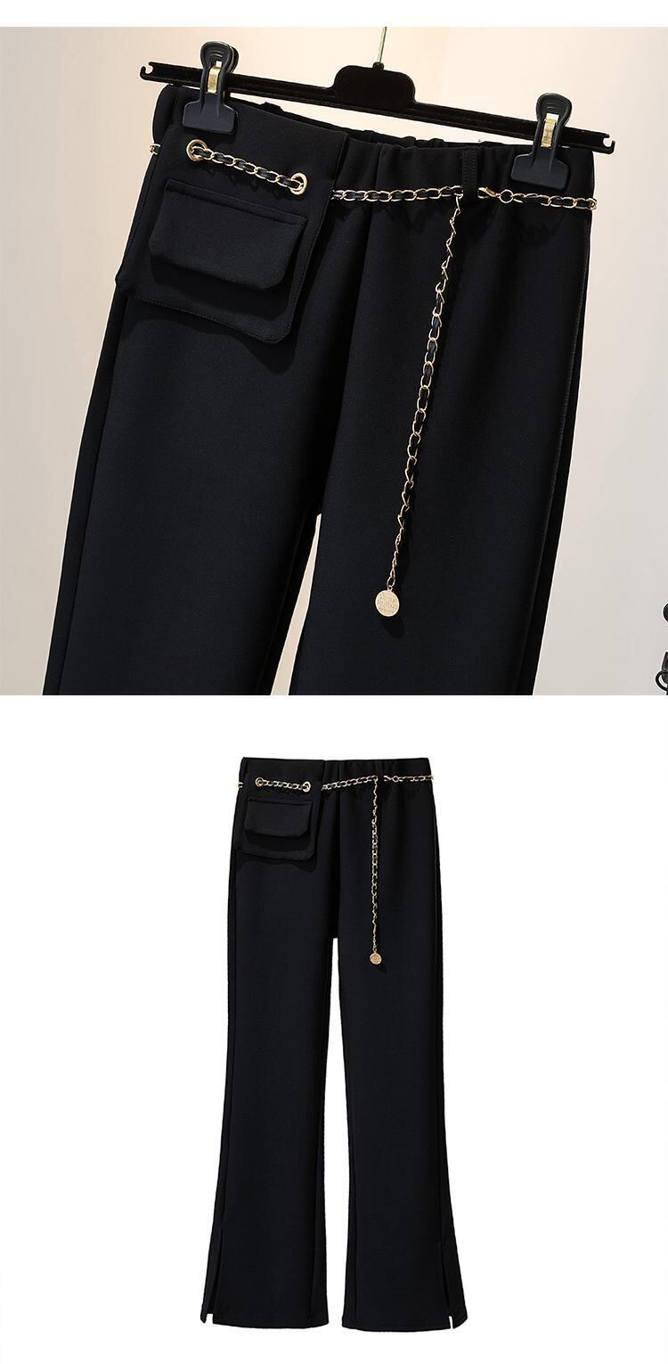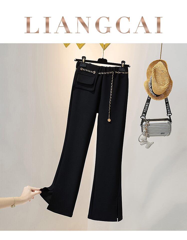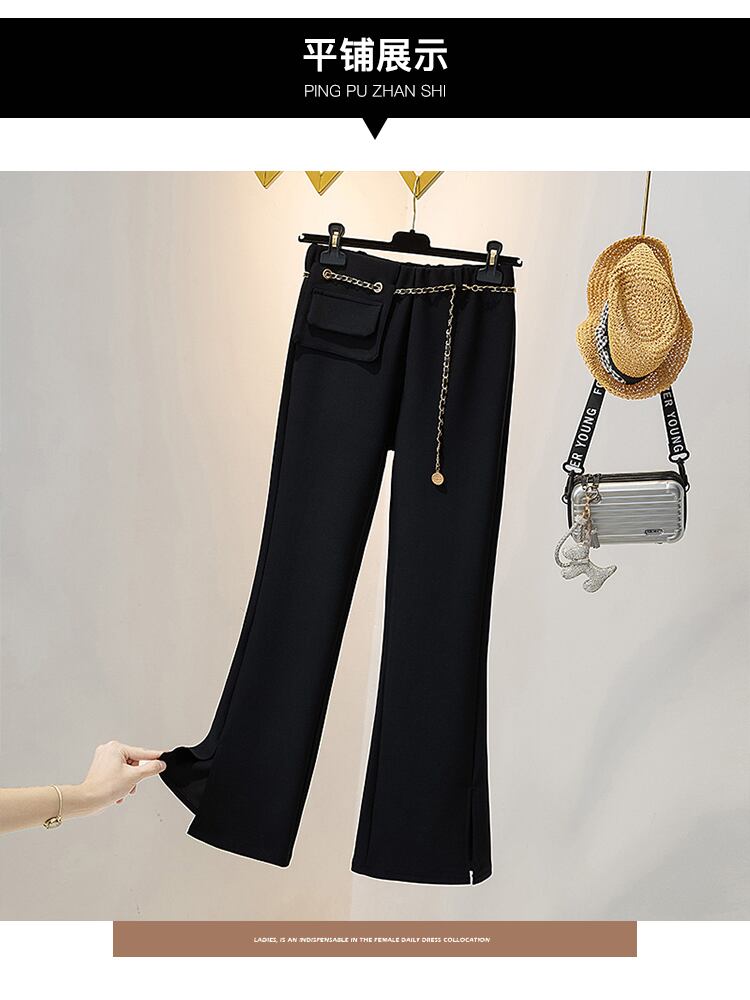 大きいサイズの婦人服 2022 太った姉妹秋の新しい eign スタイルの年齢を減らすズボン ハイウエスト弾性パンツ スリット パンツ フレア パンツ ハイウェスト レッド エラスティック 伸縮 大きめサイズ オータム 秋物 8884162799847041