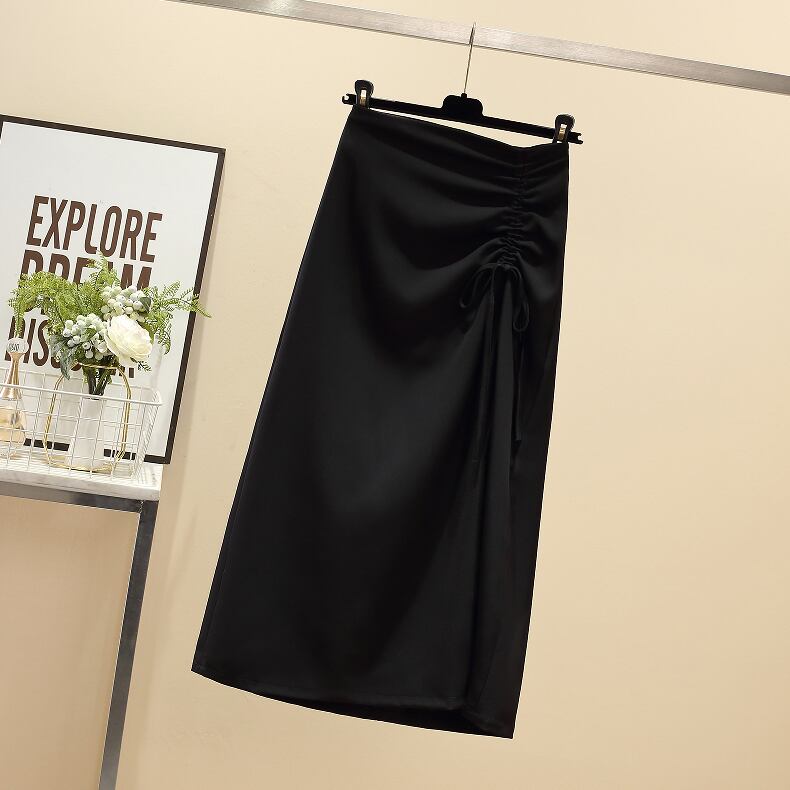 大きいサイズの婦人服2022ファットシスター夏の新しいハイウエストの薄いデザインの肉を覆う巾着スリットスカート 大きめサイズ サマー 夏物 8884164971301654
