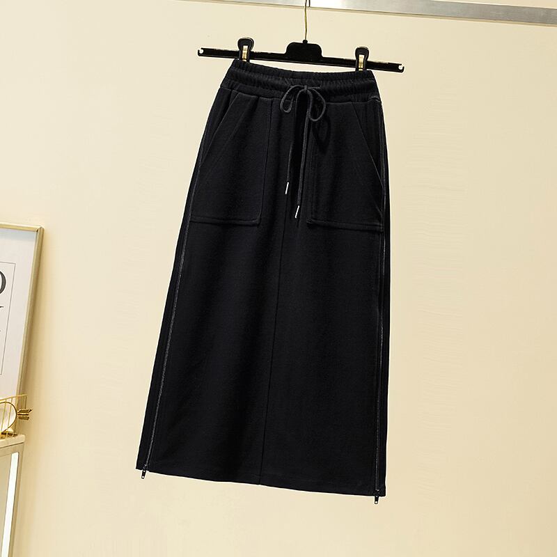 大きいサイズの婦人服 2022 ファットシスター秋の新カジュアルサイドジッパーハイウエストスカートオーバーニーワンステップスカート女性 ハイウェスト 大きめサイズ オータム 秋物 8884143034372315
