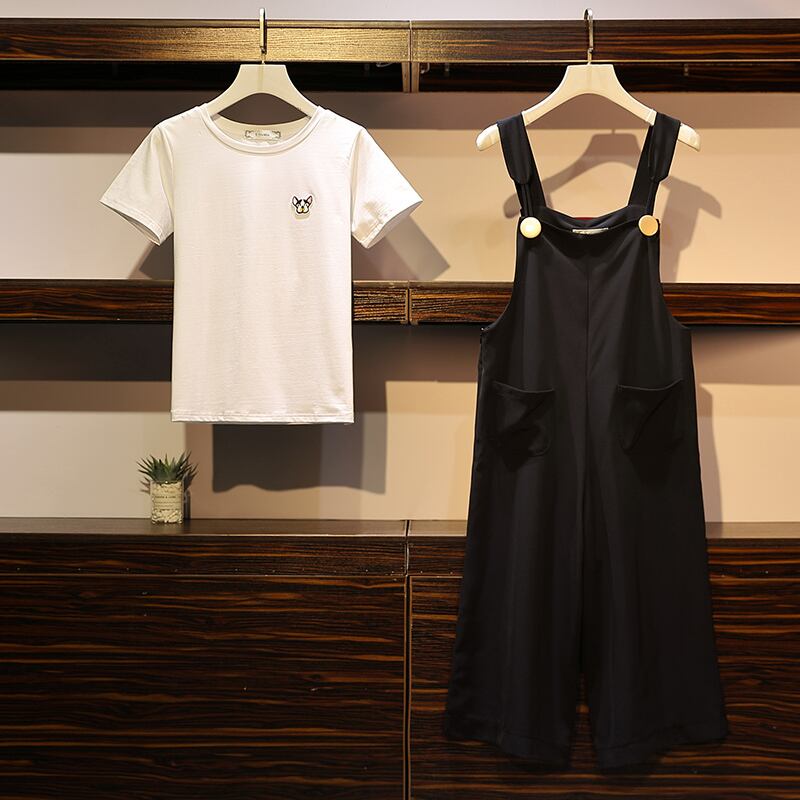 大きいサイズの婦人服 2022 流行の女性の夏の新しいファット シスターは薄いと eign Tシャツ ファッション ストラップ ワイドレッグ パンツ 2 点セット 大きめサイズ サマー 夏物 8884191768553797