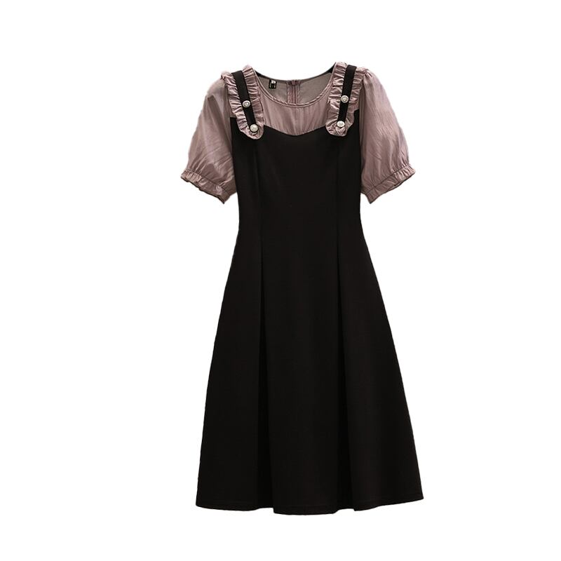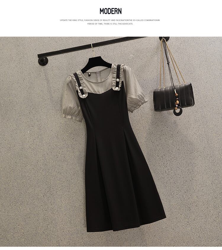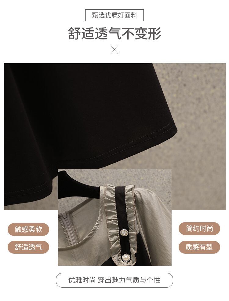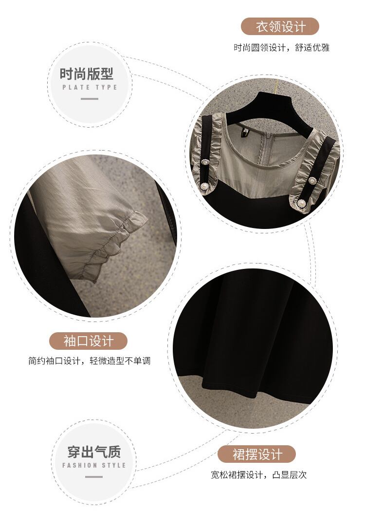 大きいサイズの婦人服2022ファットシスター秋の新しいスタイルのミッドレングスのウエストを減らす年齢のすべての試合の薄い偽のツーピースのドレス 大きめサイズ オータム 秋物 8884198739976678